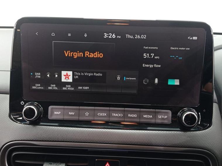 KIA WARRANTY TILL 2027 (SERVICE MUST BE KEPT UP TO DATE) With a full service history and MOT valid until November 2026, this 2022 Hyundai KONA h GDi Ultimate offers excellent peace of mind. This Euro 6 compliant model features a 1.6 litre petrol hybrid engine, combining efficiency with a smooth driving experience. The Ultimate trim level ensures you benefit from a host of advanced features designed for your comfort and safety, including Blind Spot Collision Avoidance Assist, Smart Cruise Control with Stop and Go functionality, and front parking sensors to aid manoeuvring. Inside, youll also find a convenient wireless phone charging pad and heated rear seats for enhanced passenger comfort. This Hyundai KONA stands out with its impressive fuel economy, achieving up to 55 miles per gallon, which is a significant advantage for your running costs. Furthermore, its low CO2 emissions and low insurance group rating demonstrate how this vehicle is a more economical choice compared to many others in its class. These highlights make the KONA a sensible and appealing option for everyday driving.