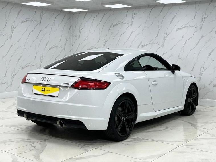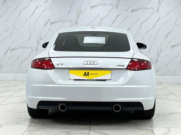 This Audi TT TFSI Black Edition from 2016 boasts a clear vehicle history, offering you peace of mind. This stylish coupe features a 2.0 litre petrol engine paired with a four wheel drive system, ensuring confident handling in various conditions. As a Euro 6 compliant vehicle, it meets modern emissions standards. Inside, youll find a premium Bang and Olufsen sound system for an immersive audio experience, Bluetooth connectivity for seamless phone integration, and manual air conditioning to keep you comfortable. The Light and Rain Sensor automatically adjusts headlights, which are also all weather LED units, enhancing visibility and safety. With an impressive fuel economy of 43 miles per gallon, this Audi TT TFSI Black Edition offers an efficient driving experience. Its low CO2 emissions further highlight its environmental consideration compared to many other vehicles in its class. This combination of performance, technology, and economy makes it a compelling choice for those seeking a refined and capable sports coupe.