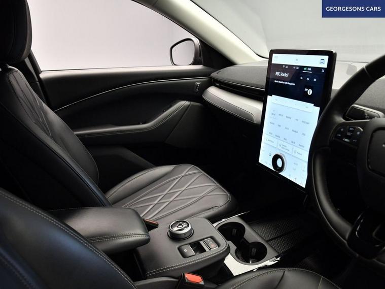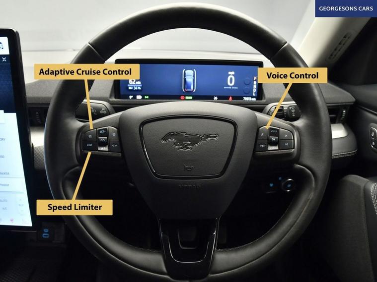 This Ford Mustang Mach-E Standard Range 70kWh is an all-electric SUV powered by a 70kWh battery and automatic transmission, delivering smooth performance, strong efficiency and zero-emissions driving. The Mach-E combines modern electric technology with distinctive styling and everyday practicality. It is equipped with satellite navigation, Apple CarPlay, Bluetooth and DAB radio for connectivity. Manoeuvring is assisted by parking sensors and park assist. Comfort features include dual-zone climate control, heated seats and a heated steering wheel. Driver assistance systems include adaptive cruise control with speed limiter, lane assist, blind spot assist and push-button start, making this a well-specified and capable electric SUV.