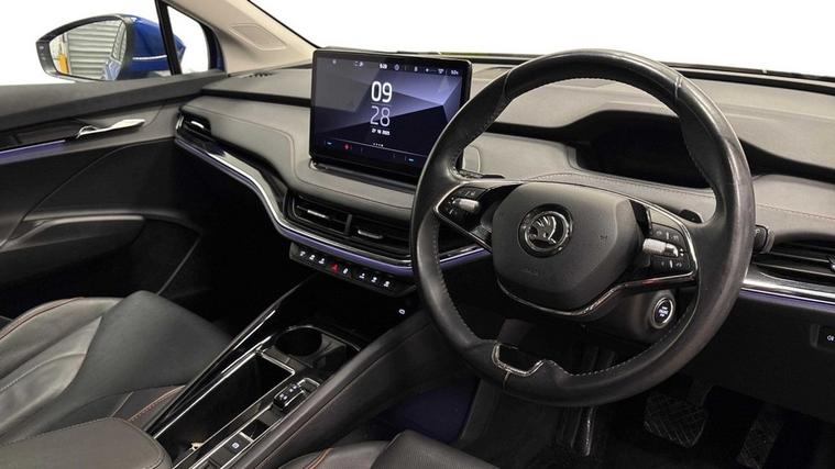 This 2021 Skoda Enyaq 80 is a superb example, having been owned by just one person from new and boasting a clear vehicle history check. As an electric vehicle, it offers an impressive battery total capacity of 82 kWh, providing a maximum range of 331 miles when new. Charging at home on a 7kW charger will take approximately 13 hours for a full charge, while rapid public charging can take you from empty to 80% in just 1 hour and 14 minutes. This Enyaq also comes with an MOT valid until October 2026, giving you peace of mind. Inside, youll find the desirable Interior Package Suite, enhancing comfort and style. The vehicle is equipped with Basic LED Headlights featuring Daytime Running Lights and automatic range control, complemented by a Light and Rain Sensor and an auto dimming rear view mirror. For your comfort, it includes Dual Zone Climate Control and the Drive Package, which notably features a heated steering wheel. The Enyaq 80 also offers a large boot space, making it practical for all your needs. These features collectively demonstrate how this Skoda Enyaq 80 stands out, offering a refined and capable electric driving experience.