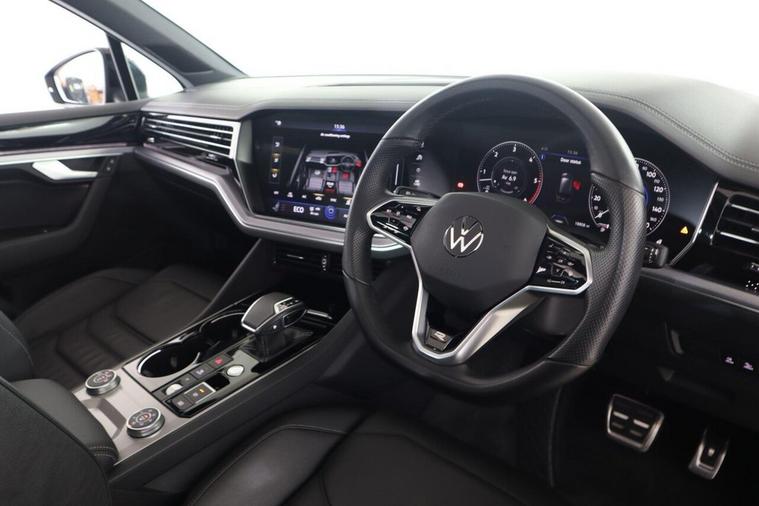 With an exceptionally low mileage of just 18808 miles for its 2023 registration, this Volkswagen Touareg TDI V6 Black Edition presents a remarkable ownership proposition. This four wheel drive model is powered by a 3.0 litre diesel engine, meeting Euro 6 emission standards. It boasts a substantial towing weight of 3500 kg, making it highly capable. Notable features include Adaptive Cruise Control with Front Assist for enhanced driving safety, Keyless Entry with a hands free tailgate for ultimate convenience, and automatic full LED headlights for superior visibility. This Touareg stands out with its impressive acceleration, reaching 0-62mph in a swift 6.3 seconds, a performance that surpasses many vehicles in its class. The large boot space offers exceptional practicality for all your needs, further enhancing its appeal. Furthermore, its placement in a low insurance group signifies potential cost savings for the owner. With only one previous owner, this vehicle has been meticulously cared for, offering a compelling blend of performance, luxury, and practicality.