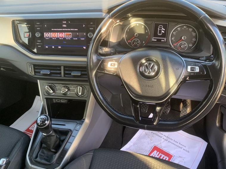 Volkswagen Polo TSI SE in metallic blue with service history. Comes with 15 alloy wheels, air conditioning, electric windows, electric heated mirrors, auto lights, stop/start engine, its a 5 speed, has bluetooth, voice command, apple car play, a touchscreen dab radio, usb port and a multifunction steering wheel. THE CAR WILL HAVE A SERVICE AND 12 MONTHS MOT / PART EXCHANGE IS ALWAYS WELCOME / FREE 12 MONTH AA ROADSIDE RECOVERY INCLUDED / FINANCE IS AVAILABLE VIA OUR WEBSITE LINK / THE CAR HAS BEEN HPI AND MILEAGE CHECKED, ALL OK / WE ARE A FAMILY RUN BUSINESS AND HAVE BEEN TRADING FOR OVER 30 YEARS, WE OFFER DELIVERY IN MAINLAND UK (Please ask for details), WE ARE HERE TO HELP YOU! PLEASE CONTACT US WITH ANY QUESTIONS