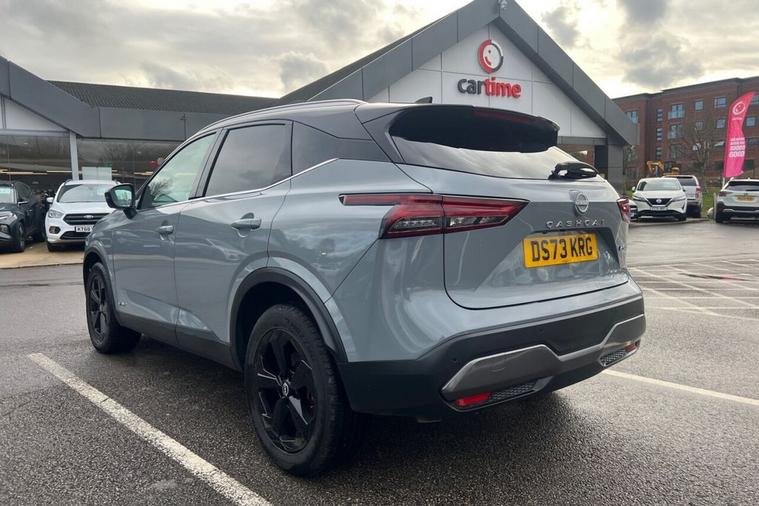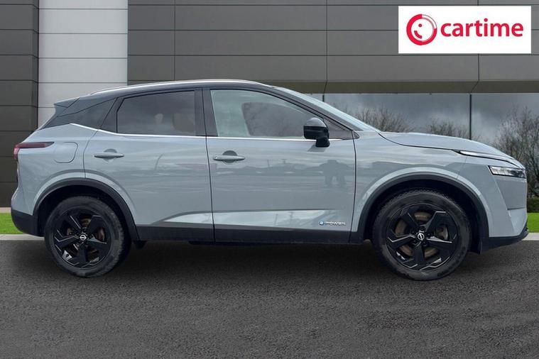 This 2023 Nissan Qashqai h e-POWER Kuro Edition presents a superb ownership proposition, having had only one owner from new and boasting a clear vehicle history check. This stylish Kuro Edition features a 1.5 litre petrol hybrid engine, meeting Euro 6 emission standards. Inside, youll find the desirable Glass Roof Pack, complete with a fixed panoramic sunroof, and seamless integration with Wireless Apple CarPlay. Parking is made effortless thanks to the Rear View Camera and the Intelligent Around View Monitor, offering a 360 degree view. The Intelligent Auto Headlights ensure optimal visibility at all times. Experience impressive efficiency with a highlight fuel economy of 54 miles per gallon, alongside low CO2 emissions that set it apart. The Qashqai also offers generous boot space, making it practical for all your needs. Its performance is equally noteworthy, achieving 0 to 60 miles per hour in just 7.9 seconds, demonstrating a responsive and engaging driving experience that surpasses many other vehicles in its class.
