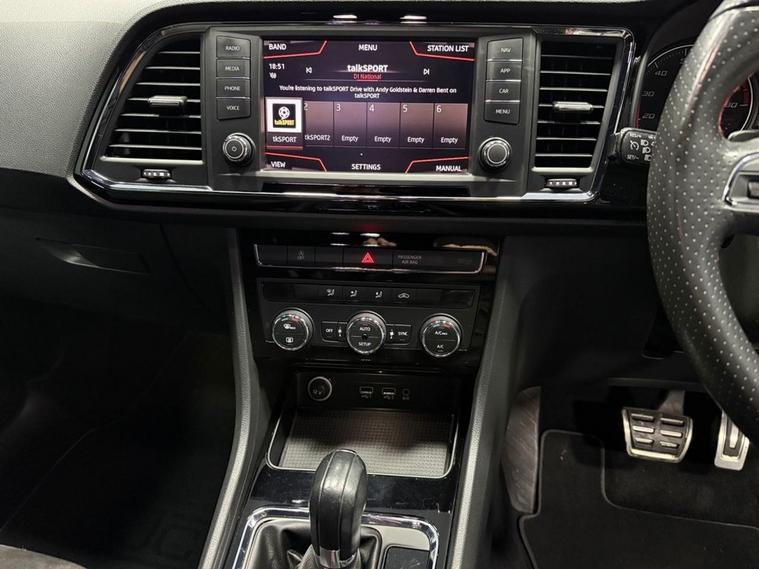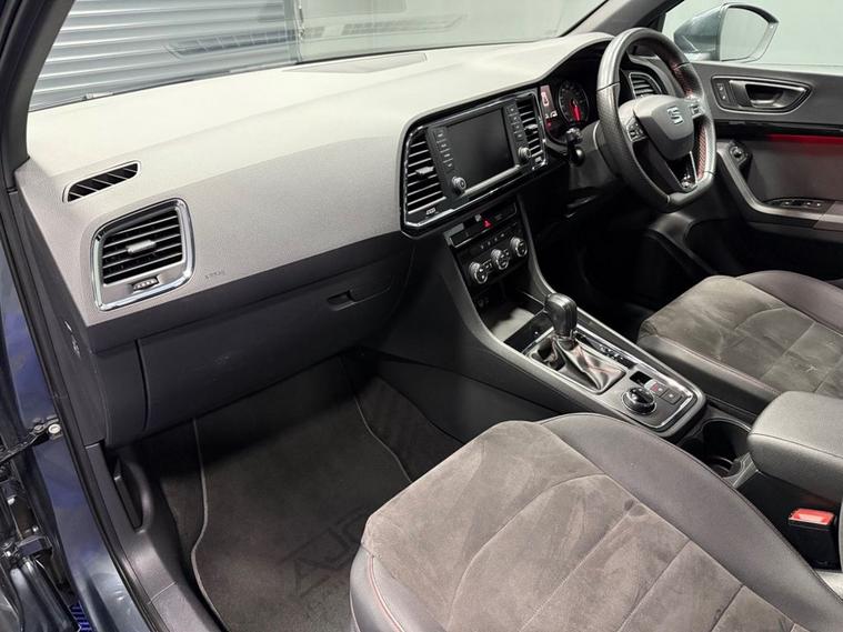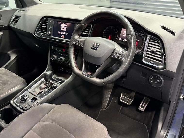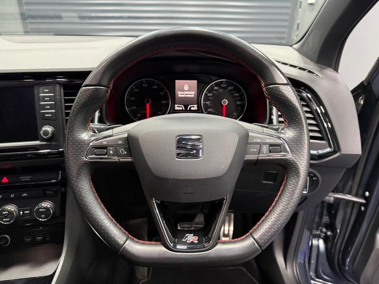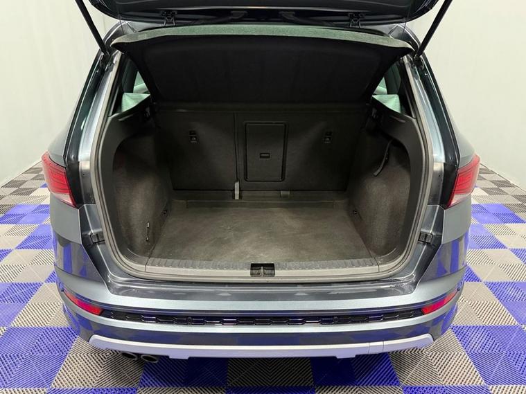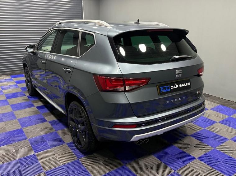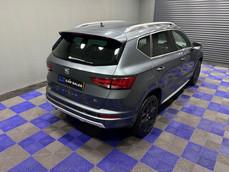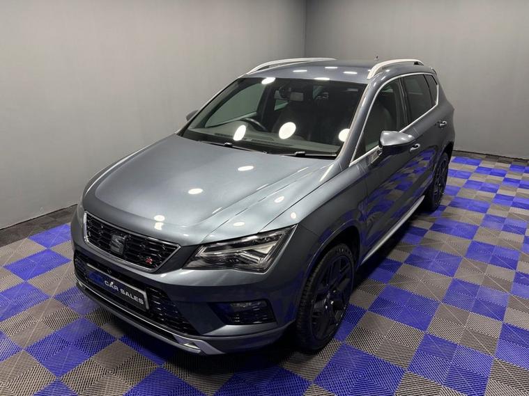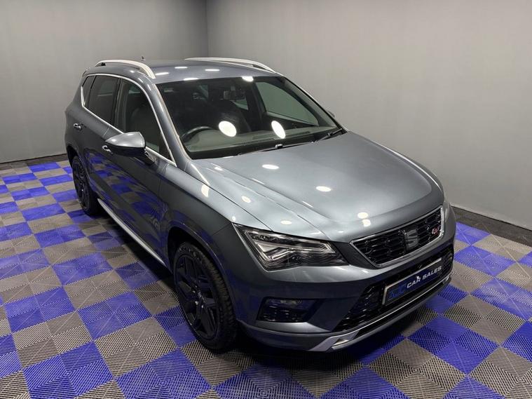 AJC Car Sales presents the SEAT ATECA 1.4 EcoTSI FR SUV 5dr Petrol DSG Euro 6 (s/s) (150 ps) finished off in Rodium Grey Metallic with 19 Y-Spoke Alloys, Two Keys and a Great Service Record. The 2018 SEAT Ateca 1.4 EcoTSI FR is a stylish and versatile compact SUV that blends everyday practicality with dynamic performance and efficient running costs. Powered by a responsive 1.4-litre turbocharged petrol engine delivering 150 PS (110 kW), this model achieves an engaging balance of performance and fuel economy while meeting stringent Euro 6 emissions standards. Paired with a smooth-shifting DSG dual-clutch automatic transmission, the Ateca offers effortless driving performance whether commuting in town or cruising on the motorway. The powertrain produces a strong torque figure of approximately 250 Nm, providing confident acceleration in a broad range of driving conditions. As part of SEATs FR (Formula Racing) trim, this Ateca combines sporty styling cues with enhanced driver engagement. The exterior is distinguished by bold FR design elements and alloy wheels, while the interior delivers a driver-focused environment with quality materials and thoughtful ergonomics. Cabin features typically include dual-zone climate control, advanced infotainment with connectivity options, and supportive seating designed for long journeys as well as everyday use. Practical SUV virtues are at the heart of the Atecas appeal, with a spacious five-seat layout, versatile boot capacity and high-set driving position that gives excellent visibility. A range of modern safety technologies and driver-assist systems further enhance confidence on the road. Overall, the 2018 SEAT Ateca 1.4 EcoTSI FR DSG represents a compelling choice for drivers seeking a premium-feeling compact SUV that delivers strong performance, efficient running costs and a well-equipped specification in a versatile package.