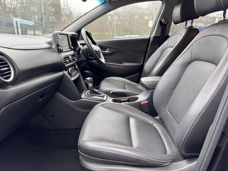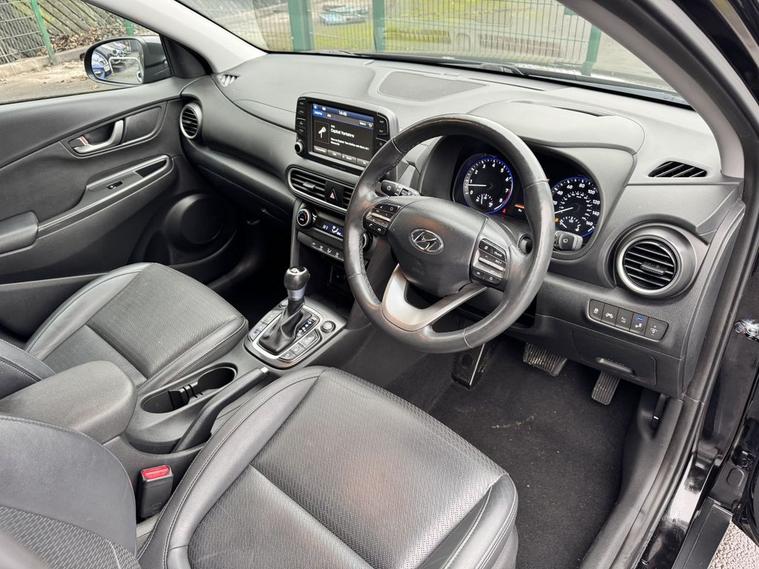 Boasting an impressive MOT valid until November 2026 and a full service history, this 2019 Hyundai KONA T-GDi Premium GT is a well maintained example. With only 39, 000 miles on the clock, this four wheel drive petrol model offers a Euro 6 compliant 1.6 litre engine. Key features include front and rear parking sensors with a rear camera guidance system, a smart key for keyless entry and engine start stop, and a convenient wireless phone charging pad. Enjoy seamless connectivity with Android Auto integration, making every journey more enjoyable. This Premium GT trim KONA stands out with its brisk 0-60mph acceleration in just 7.9 seconds, demonstrating its lively performance. Its low insurance group rating also indicates that running costs are kept competitive compared to similar vehicles. This combination of strong performance, advanced technology, and excellent provenance makes this Hyundai KONA a compelling choice.