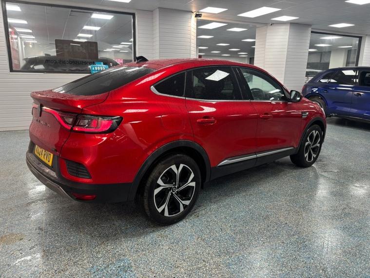 This 2024 Renault Arkana E-TECH techno offers an exceptional blend of style and efficiency, making it a standout choice for the discerning driver. As a 1.6 litre petrol hybrid, this Euro 6 compliant vehicle is designed for modern motoring, boasting an impressive fuel economy of up to 60 miles per gallon. Its techno trim level ensures a well equipped interior, and youll appreciate the generous boot space, perfect for all your luggage and shopping needs. The Arkana E-TECH techno is also designed with your running costs in mind, featuring a low insurance group that can help keep your premiums down. Furthermore, its low CO2 emissions demonstrate a commitment to environmental responsibility, setting it apart from many other vehicles in its class. This combination of economical performance, practical features, and lower running costs makes the Renault Arkana a smart and appealing option.