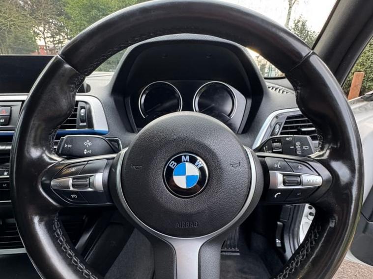 Presenting the stunning 2018 BMW 1 Series 1.5 118i M Sport Shadow Edition, finished in a premium M Sport trim with the highly desirable Shadow Pack. This example has covered just 59, 000 miles and is powered by the refined and efficient 1.5 petrol Euro 6 engine paired with a smooth automatic gearbox. The Shadow Edition enhances the already sporty M Sport styling with black exterior accents, M Sport upgraded alloys, privacy glass, LED headlights, and a premium interior featuring M Sport half-leather seats, ambient lighting, and BMWs iDrive infotainment system. This vehicle delivers the perfect blend of sporty performance, comfort, and everyday usability, ideal for both city driving and motorway journeys. It has been fully inspected and drives beautifully, with responsive handling and excellent fuel economy. A very clean and well-maintained example, ready to drive away.