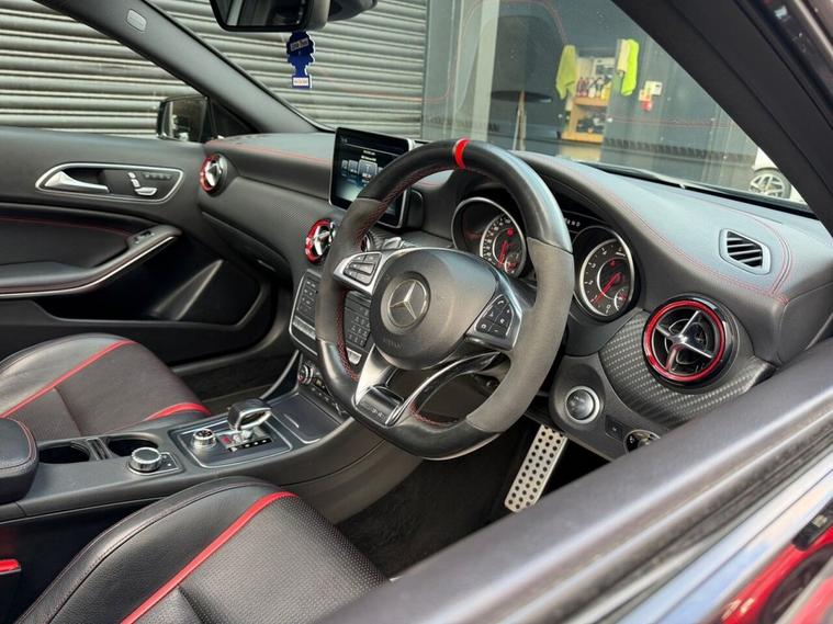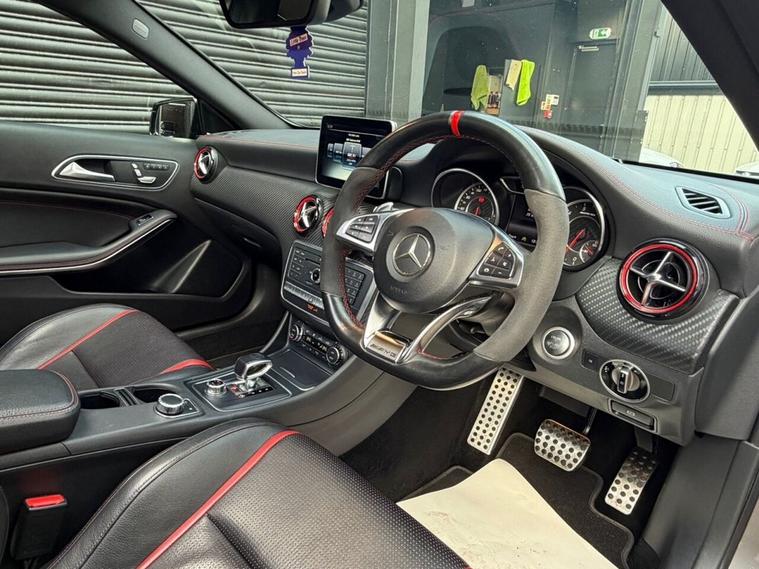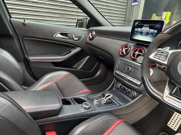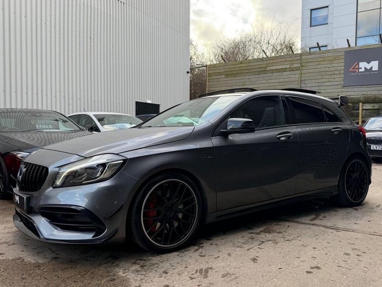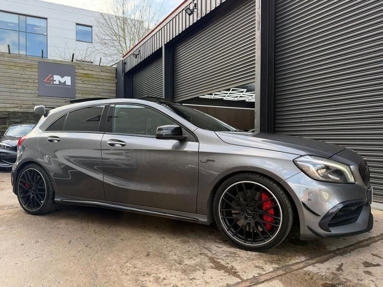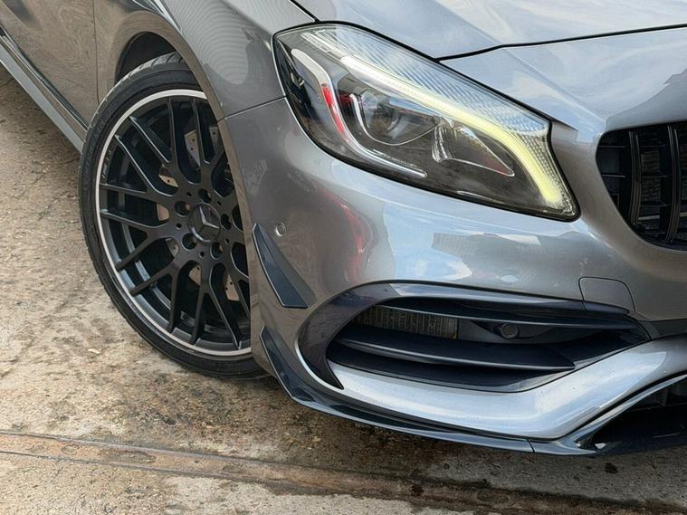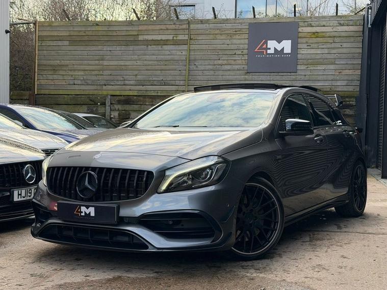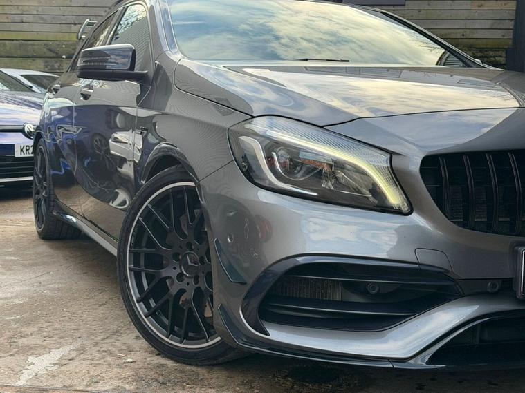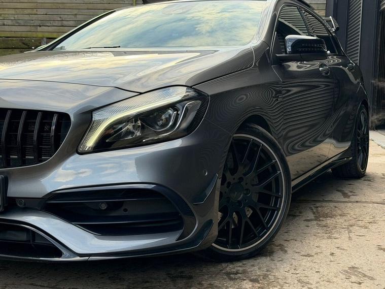 With an exceptionally low mileage of just 50, 000 miles for its 2016 registration, this Mercedes Benz A Class A45 AMG Premium represents a rare find. This Euro 6 compliant model boasts a powerful 2.0L petrol engine paired with a four wheel drive drivetrain, ensuring dynamic performance. It comes with a clear vehicle history check and a 6 month warranty for your peace of mind. Notable features include the striking AMG Night Package, the functional AMG Aerodynamics Package, and an AMG Performance exhaust system. The vehicle is further enhanced by 19 inch AMG Cross Spoke alloy wheels, painted in a sophisticated Titanium Grey with a high sheen finish, and the luxurious AMG Exclusive Package, featuring Lava Black leather upholstery with striking red perforations. Experience exhilarating performance with this AMG A45, capable of accelerating from 0 to 60mph in an impressive 4.2 seconds. This remarkable acceleration figure highlights its superior performance compared to many other vehicles in its class. The combination of the AMG Aerodynamics Package and the AMG Performance exhaust system not only contributes to its sporty aesthetic but also enhances its driving dynamics and auditory appeal, making this Mercedes Benz A Class a truly engaging and desirable car.
