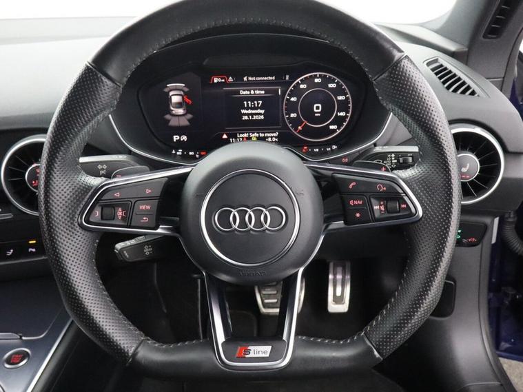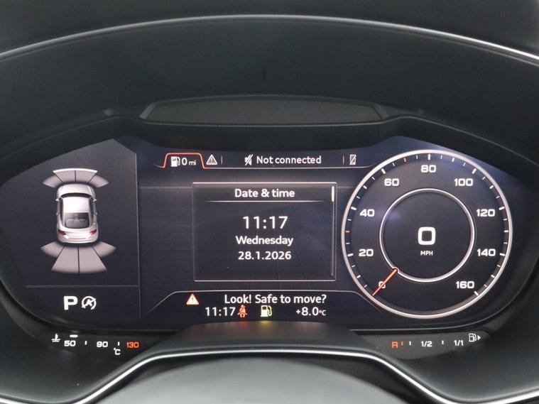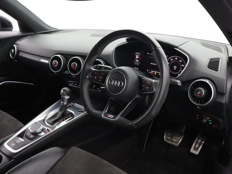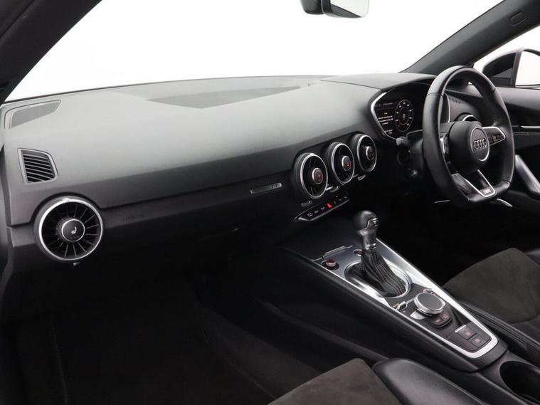 This 2018 Audi TT TFSI Black Edition boasts exceptionally low mileage for its age, having covered just 33, 000 miles. This particular example is a Euro 6 compliant model, powered by a 2.0 litre petrol engine and comes with a clear vehicle history check. The Black Edition trim enhances its appeal, and youll find it equipped with manual air conditioning, Bluetooth mobile telephone preparation, and a premium Bang and Olufsen sound system for an enhanced audio experience. Parking is made easier with rear parking sensors, and the all weather LED headlights provide excellent visibility in various conditions. With a fuel economy of 44 miles per gallon, this Audi TT offers an efficient driving experience, further complemented by its low CO2 emissions. These highlights demonstrate how this vehicle stands out from others in its class, offering a compelling combination of performance, technology, and economy.