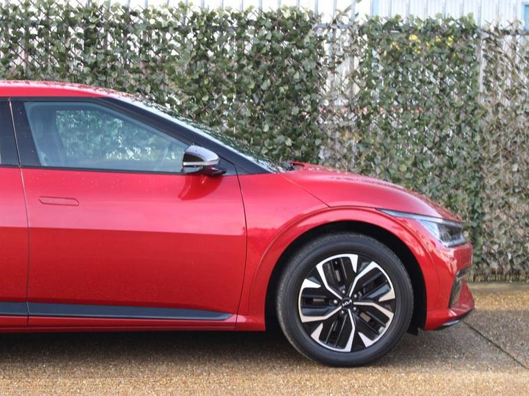 **97.6% BATTERY HEALTH** FULL KIA SERVICE HISTORY** This 2022 Kia EV6 GT Line boasts exceptionally low mileage for its age, having covered just 23, 819 miles, and has been owned by only one person. This electric vehicle, presented in the GT Line trim, features a substantial 77 kWh battery offering a maximum range of 314 miles when new. For your convenience, a full charge at home using a 7kW charger takes approximately 12 hours and 30 minutes, while rapid public charging can replenish the battery from empty to 80% in as little as 20 minutes. The car is equipped with advanced safety features including Blind Spot Collision Avoidance Assist with Rear Cross Traffic Assist and Safe Exit Assist, alongside front and rear parking sensors for effortless manoeuvring. The Kia EV6 GT Line stands out with its impressive performance, achieving 0-60mph in a swift 5.2 seconds, demonstrating its dynamic capabilities. This four wheel drive model also enhances your driving experience with a heated steering wheel for comfort on colder days and Navigation Smart Cruise Control with a speed limiter, offering a more relaxed and intuitive journey. These features collectively highlight how this particular EV6 offers a superior driving experience and advanced technology compared to other vehicles in its class.