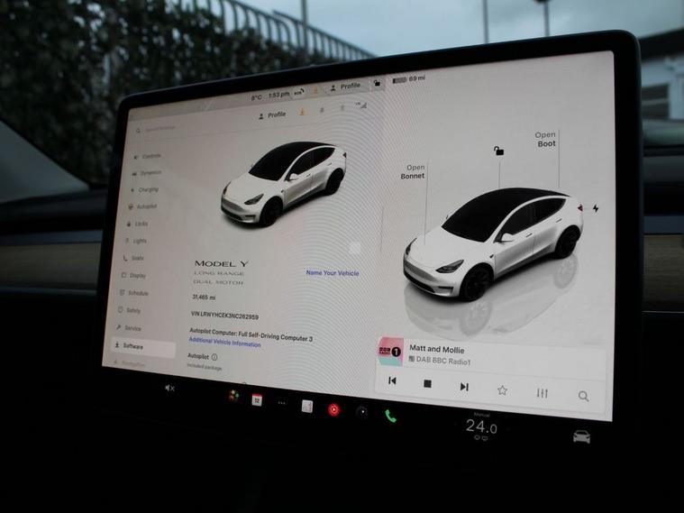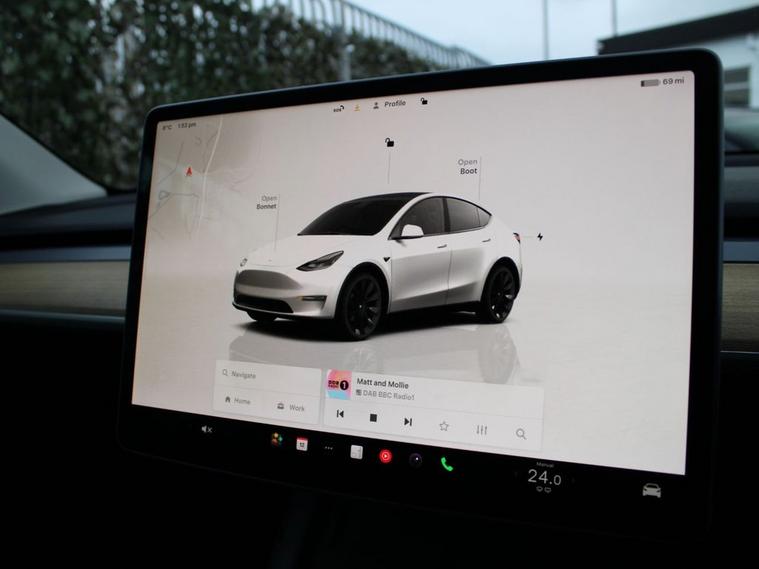 **93.7% BATTERY HEALTH** 20 INDUCTION ALLOYS This 2022 Tesla Model Y Long Range presents an exceptional ownership proposition, having been driven by just one owner from new and boasting remarkably low mileage for its age. As a fully electric vehicle, it offers a compelling blend of performance and efficiency, featuring a substantial 85 kWh battery that provided an impressive 331 miles of range when new. This Four Wheel Drive model also benefits from a rapid 0-60mph acceleration time of just 4.8 seconds, making it a dynamic driving experience. Further enhancing its appeal, this Model Y comes equipped with a range of desirable features. Enjoy year round comfort with heated front and rear seats, alongside a heated steering wheel. Connectivity is seamless with music and media available via Bluetooth, and the expansive glass roof with ultraviolet and infrared protection creates an open and airy cabin. For added peace of mind, Blind Spot Monitoring is included. Charging is convenient, with a full charge at home taking approximately 12 hours on a 7kW charger, and a rapid charge to 80% achievable in just 25 minutes at a public charging station. These attributes collectively highlight how this particular Tesla Model Y stands out from other vehicles in its class.