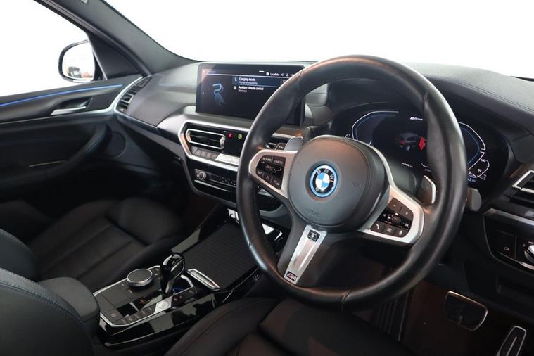This 2022 BMW X3 30e M Sport presents an exceptional ownership proposition, having been meticulously maintained by a single owner and boasting remarkably low mileage for its year at just 29, 689 miles. This Euro 6 compliant, four wheel drive model features a powerful 2.0 litre petrol plug in hybrid engine, offering an efficient and dynamic driving experience. Inside, you'll find the luxurious Vernasca Leather in Black with striking Blue Contrast Stitching, complemented by a Sensatec Dashboard and front lumbar support for enhanced comfort. The M Sport trim ensures a sporty aesthetic, while the Comfort Plus Package adds significant convenience with features like Keyless Entry, Seats with Memory function, and a heated steering wheel. The performance of this X3 is truly impressive, accelerating from 0 to 62 miles per hour in a swift 6.1 seconds, a testament to its advanced plug in hybrid technology and engineering. This rapid acceleration indicates a superior performance level compared to many other vehicles in its class. The inclusion of a heated steering wheel, part of the Comfort Plus Package, further enhances driver comfort, especially during colder months, setting it apart from models without this desirable feature. This BMW X3 30e M Sport masterfully blends performance, luxury, and efficiency, making it a standout choice.