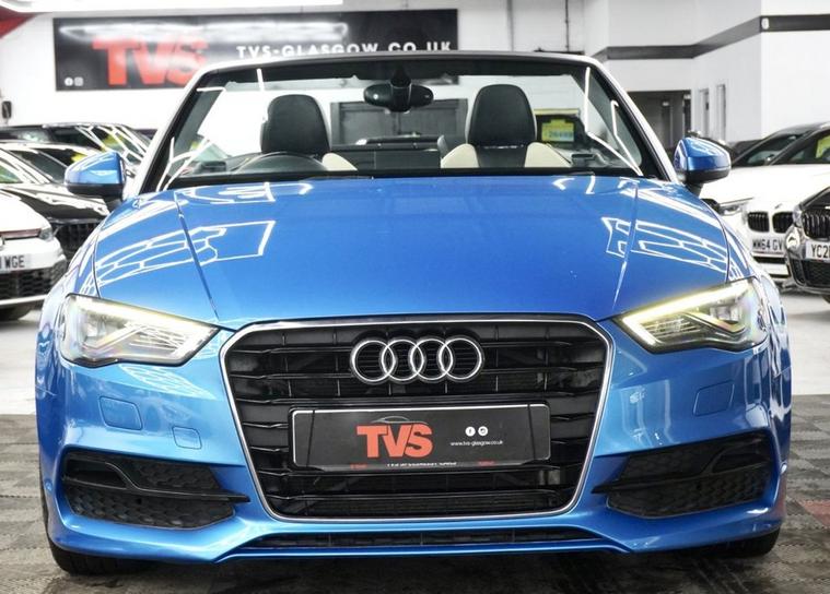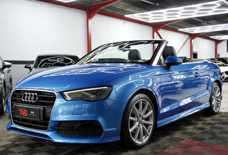 2015/15 Audi A3 Convertible 1.4 TFSI CoD S Line 2dr Petrol Manual (Euro 6) - 6 Speed Manual - Kingfisher blue paint with Audi Exclusive Interior with upgraded Nappa Black and White Duo Leather - Fully Electric Roof - 59k Miles - 2 Remote Keys - 3 Former Keepers - Audi Main Dealer and Independent Service History just serviced for sale by independent German car specialist with Audi DSR updated - fresh 12 months MOT with no advisories - Platinum warranty - full 12 months AA roadside assistance also included! Audi Exclusive interior including leather centre console and matching Audi Exclusive floor mats! Bang & Olufsen premium audio! LED adaptive headlights! Falken premium tyres all round! Parking sensors!