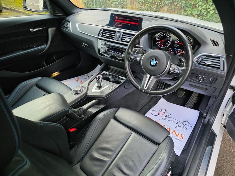 Romans of St Albans are delighted to present to you this BMW M2 which is absolutely immaculate, finished in Alpine White, with Black Dakota Leather and Blue stitching. Most service history is on the iDrive, with the all important running in service carried out. Most recent service was done 24.03.2025 @ 37, 427 miles and it will come fully serviced by us, for its new owner. It comes with some great optional extras to include: Harman Kardon, Reverse Camera, Electric Folding Mirrors with Anti-Dazzle, Front Electric Seats with Memory Function, Heated Front Seats, and much more. FINANCE AVAILABLE. A £299 admin fee applies to third party finance companies being used. FREE ON-SITE PARKING (ASK FOR DETAILS.)Romans after care package includes: Romans warranty for 6 months (12, 24 & 36 months are available), Main dealer cover available, Free breakdown cover for warranty duration, Full Romans service prior to delivery, 84 point vehicle inspection, 12 months MOT, Free Life time MOT when servicing with us (ask for details), Total value of package: £2000 - ALL INCLUSIVE IN THE PRICE. All of our clients have the added peace of mind that we have our own workshop facilities with free courtesy cars. Part Exchange very welcome, nationwide delivery also available. To avoid a wasted journey we highly recommend making an appointment, so call us now to get yours booked! Romans provide the highest of quality vehicles, and have at least 80 cars in stock at any one time. This means not all cars can be kept on site. This will also allow us to give you our fully undivided attention when viewing the vehicle you are interested in, WE ARE LOOKING TO BUY YOUR TOP SPEC, LOW MILEAGE, FULL SERVICE HISTORY PRESTIGE, SPORTS, AND 4X4 VEHICLES. GET MORE FOR YOUR VEHICLE BY EITHER SELLING TO US, OR ASKING US TO SELL YOUR VEHICLE FOR YOU