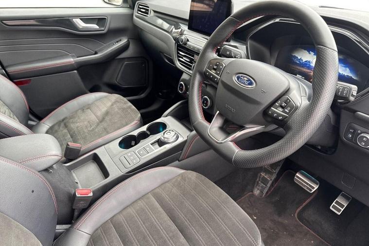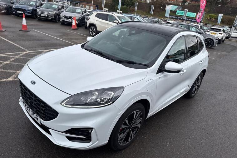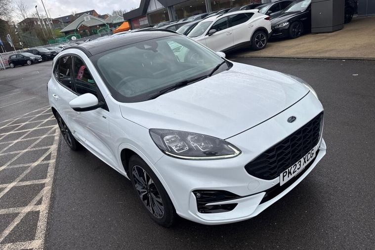 This 2023 Ford Kuga ST-Line X offers excellent peace of mind with its MOT valid until May 2026 and a clear vehicle history check. This stylish ST-Line X variant is powered by an efficient 2.5 litre petrol plug-in hybrid engine, meeting Euro 6 emission standards. Enjoy convenience with automatic on-off headlights, front and rear parking sensors, and the Ford Key Free system for keyless entry and start. The spacious interior features dual-zone electronic automatic temperature control for personalised comfort, and a power opening panoramic roof adds an open airy feel to every journey. The Kuga ST-Line X stands out with its advanced features, demonstrating a superior driving experience compared to other vehicles in its class. The combination of its plug-in hybrid technology, sophisticated safety aids like parking sensors, and the comfort provided by the automatic climate control and panoramic roof, makes this a well equipped and practical choice for everyday driving.