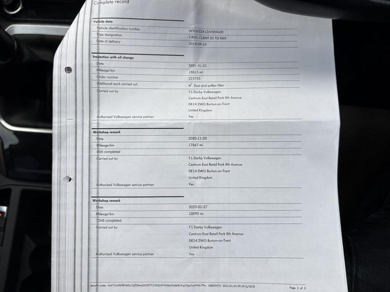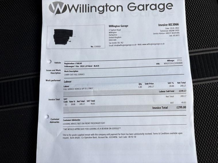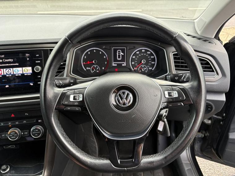 This 2018 Volkswagen T-Roc TSI SE is presented with a clear vehicle history check, offering you peace of mind. This stylish SUV features a 1.0 litre Euro 6 compliant petrol engine and comes in the well appointed SE trim. Inside, you will find the Composition Media System, complete with Bluetooth connectivity for seamless calls and music streaming. For effortless parking, it is equipped with front and rear parking sensors, further enhanced by parking assistance systems. The T-Roc also benefits from a dusk sensor, which automatically activates the headlights, and adaptive cruise control to help maintain a set speed and distance from the vehicle ahead. Its halogen clear headlights are range adjustable and complemented by LED daytime running lights, ensuring visibility. This Volkswagen T-Roc TSI SE offers excellent running costs, achieving an impressive highlight fuel economy of 55 miles per gallon. Its low CO2 emissions and low insurance group rating further indicate that this vehicle is a more economical choice compared to similar models. These highlights make it an attractive option for those seeking a practical and cost effective SUV.