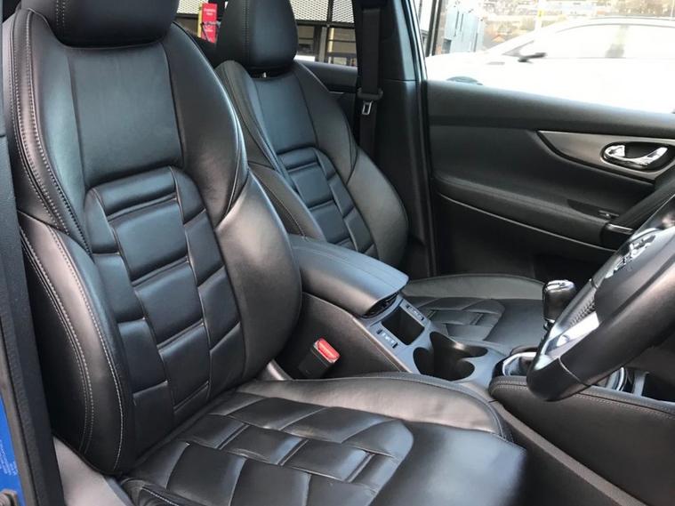 Top spec and in the best colour this pristine Qashqai has only had 2 owners and has been serviced at 13/23/35/50 and 58000 miles, Tekna plus spec includes heated windscreen, Quilted Nappa Leather seats, Touch Screen Satellite Navigation, Glass Panoramic Sunroof, Rear Reversing Cameras with 3 Views, Privacy Tinted Heat Reflecting Glass, BOSE Sound System, Electric seat ajustment, Electric memory seat, Keyless entry and Go, Heated Front Seats, Bluetooth Mobile Phone, 19 inch polished Alloys with matching michelin tyres, Folding and Electric Mirrors. Electric Windows, Cruise Control, Lane Assistance, Three Spoke Leather Multi-Function Steering Wheel, Split Folding Rear Seats and Climate Control