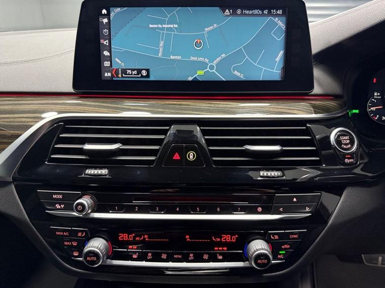 AJC Car Sales presents this stunning BMW 5 SERIES 2.0 520d M Sport Touring 5dr Diesel Auto Euro 6 (s/s) (190 ps) finished off in Alpine White with 19 Diamond Cut Alloys, Two Keys and a Great BMW Service History. This BMW 520d comes with a huge spec of over £13000 worth of optional extras which include: Harmon Kardon Sound System, Heads Up display, BMW Display Key, Electric Tow Bar, M Sport Plus Package, Technology Package, Comfort Package, BMW Gesture Control, Electric Adjustable Memory Seat, Comfort Access with Smart Opener and More. This 2017 BMW 5 Series 520d M Sport Touring combines executive comfort with sporty styling and impressive efficiency. Powered by a refined 2.0-litre diesel engine producing 190 PS, paired with a smooth automatic transmission, it delivers strong performance while remaining economical and compliant with Euro 6 emissions standards, including stop/start technology. Finished in the sought-after M Sport specification, this Touring model benefits from enhanced exterior styling, including sportier bumpers, distinctive alloy wheels, and subtle M Sport detailing that gives the car a dynamic and premium presence on the road. The Touring body style offers excellent practicality, with a spacious and versatile boot, making it ideal for both business and family use. Inside, the cabin reflects BMWs reputation for quality and driver-focused design, offering a refined, comfortable environment with premium materials and advanced technology throughout. The 5 Series is renowned for its composed ride, precise handling, and excellent long-distance comfort, making it an outstanding executive estate. Overall, this BMW 520d M Sport Touring is a superb balance of performance, luxury, and practicalityperfect for drivers seeking a premium diesel estate with strong efficiency and unmistakable BMW driving dynamics.