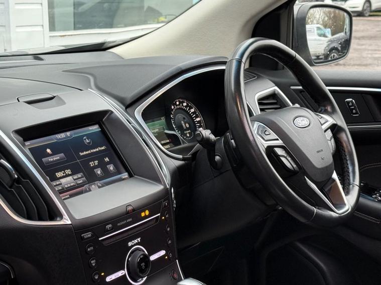 Discover this exceptional 2017 Ford Edge TDCi Titanium, boasting remarkably low mileage for its age at just 49, 400 miles and having had only two owners. The car comes with 2 keys, documented service history and will also have a fresh service from our in house technicians along with a minimum MOT of 8 months. The vehicle has undergone an extensive PDI check along with a 50 mile road test and performs as expected. This Euro 6 compliant, four wheel drive model is powered by an efficient 2.0L diesel engine, offering a compelling blend of performance and economy. Inside, youll find the sophisticated Titanium trim, featuring a Ford DAB Audio system with a navigation system and nine speakers, including Bluetooth connectivity. Comfort is assured with DEATC dual zone electronic automatic temperature control, allowing both driver and passenger to set their preferred climate. The convenience of this Ford Edge is further enhanced by its handsfree power tailgate and keyless entry system, making loading and accessing the vehicle effortless. Parking is made simple with front and rear parking sensors, providing added confidence in any situation. The SYNC 3 system, complete with an 8in colour touchscreen, Bluetooth and voice control, also includes an emergency assistance feature, keeping you connected and safe. With its generous boot space, this Edge is perfectly suited for families and adventurers alike, offering more practicality than many vehicles in its class.