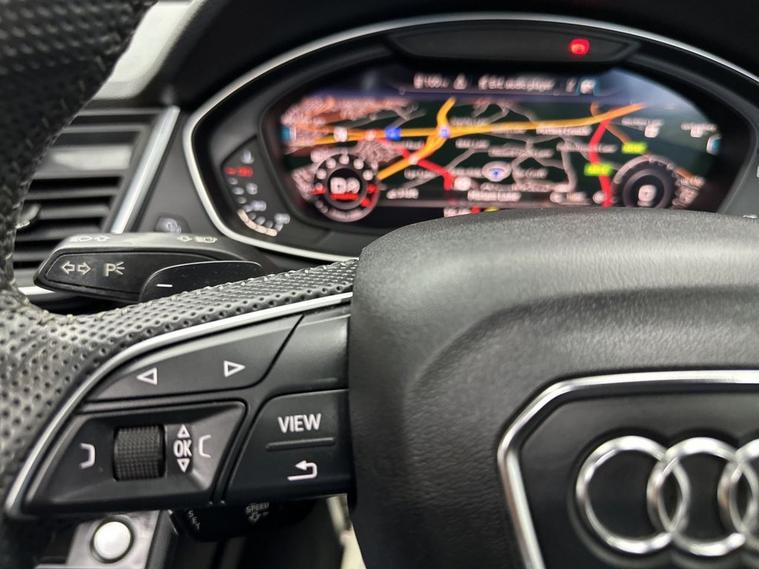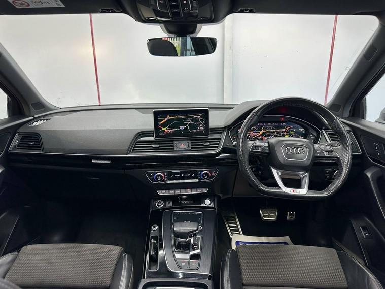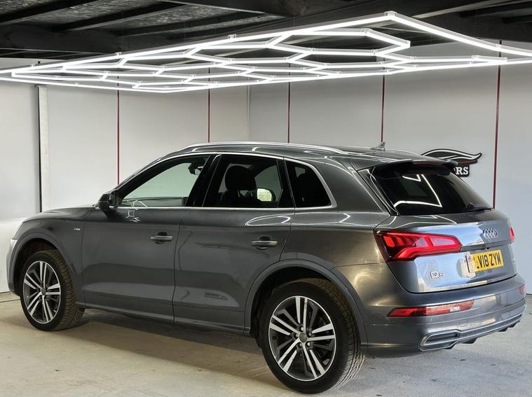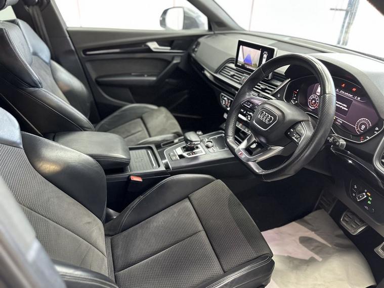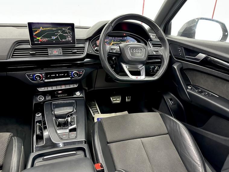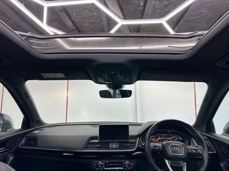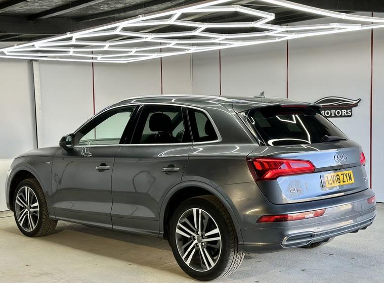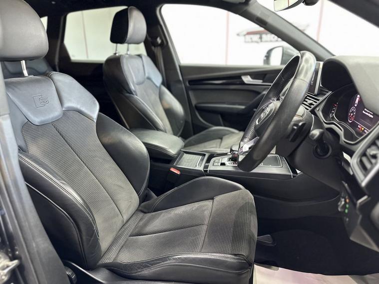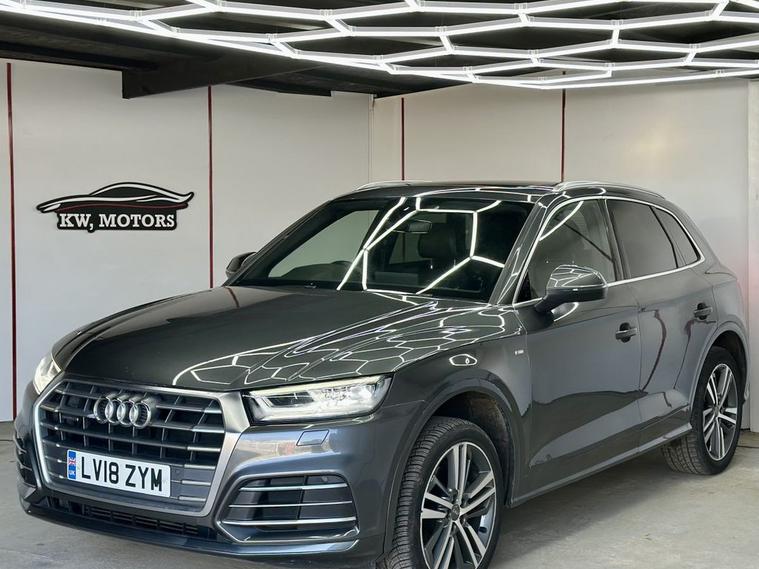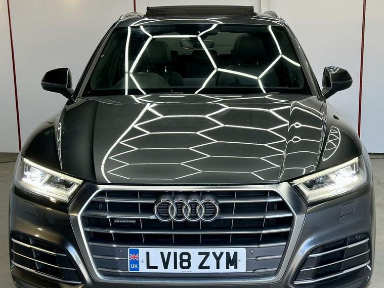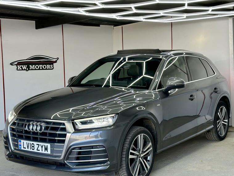 This 2018 Audi Q5 TFSI S line offers excellent peace of mind with fresh MOT and a clear vehicle history check. 1 owner from new , Parking sensors, This Four Wheel Drive SUV is powered by an efficient 2.0 litre Euro 6 petrol engine, Inside, youll find a luxurious cabin featuring Fine Nappa Leather upholstery in Black with Rock Grey stitching, complemented by 20 inch alloy wheels in a 5 segment spoke design with a contrasting grey diamond cut finish. The S line trim ensures a sporty aesthetic, while the panoramic glass sunroof, which includes an opening function, adds an open and airy feel to your journeys. Experience enhanced comfort with heated front and outer rear seats, perfect for those colder days. The Audi Matrix LED headlights, paired with LED rear lights and dynamic front and rear indicators, provide superior visibility and a distinctive look. This Q5 also boasts a large boot space, making it ideal for families or those who need ample room for luggage or shopping. While the vehicle has partial service history, its overall condition and the included features demonstrate its quality and appeal compared to other vehicles in its class.