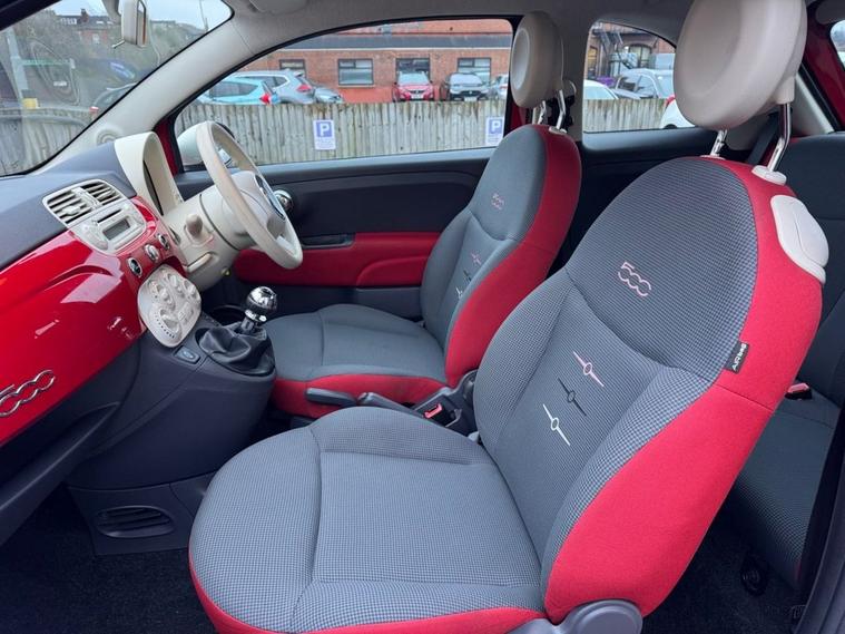 EXCELLENT CONDITION Fiat 500 1.2 Colour Therapy Edition in striking Pasodoble Red paintwork with 14 inch white wheel covers. The car will come with a fresh 12 months MOT upon purchase and has full service history - 8 services on record to 41, 422 miles. Only £35 year tax banding, low insurance group (7) and over 55 miles per gallon combined fuel economy. Call 01138032273 or visit dealer's website