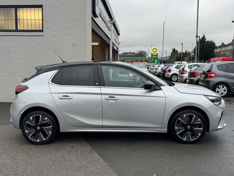 This 2022 Vauxhall Corsa Electric Elite Premium has had only one owner since new, offering a superb example of this popular electric hatchback. With a total battery capacity of 50 kWh, it provides a maximum range of 170-210 miles when fully charged, making it ideal for both daily commutes and longer journeys. Charging at home on a 7kW charger takes approximately 8 hours, while rapid public charging can take you from empty to 80% in just 55 minutes. This vehicle also benefits from an MOT valid until May 2026, and recent service at 24, 857 miles. The Elite Premium trim level comes equipped with a host of impressive features that set it apart. Youll find the convenience of Keyless Entry and Start, alongside the advanced IntelliLux LED Matrix Headlights and Automatic Lighting Control for optimal visibility. Parking is made easier with the Panoramic Rear View Camera and Parking Sensors. Inside, the Multimedia Navi Pro System seamlessly integrates with your smartphone via Android Auto and Apple CarPlay, and offers Bluetooth connectivity for calls and music. These features combine to offer a refined and technologically advanced driving experience, superior to many other vehicles in its class.