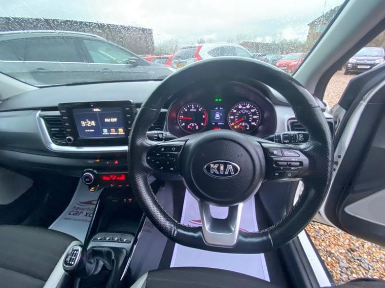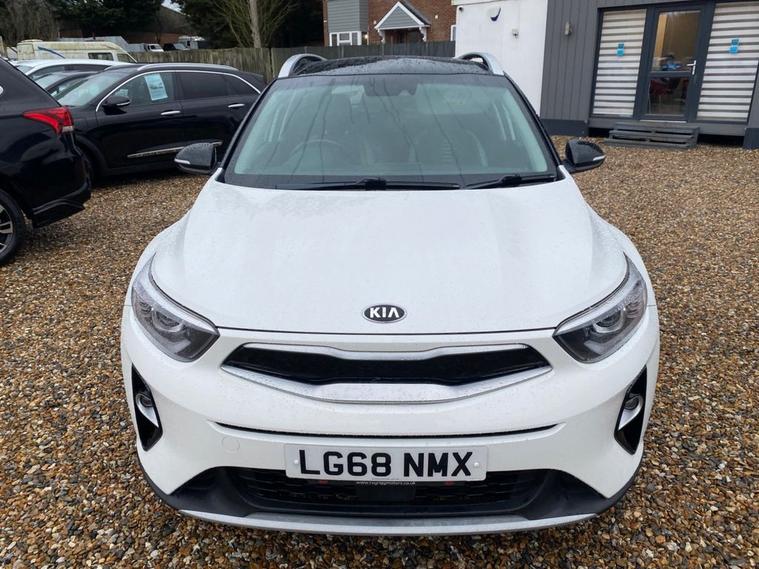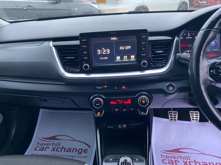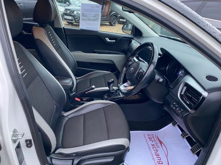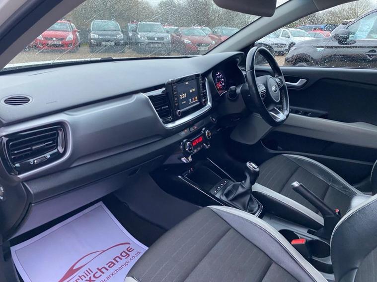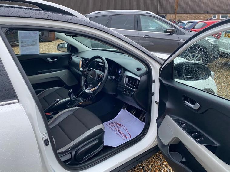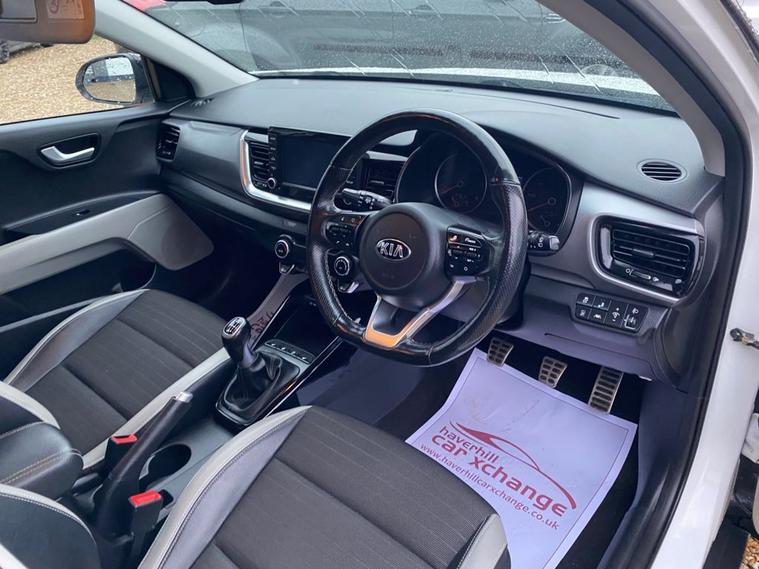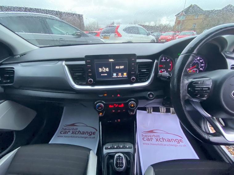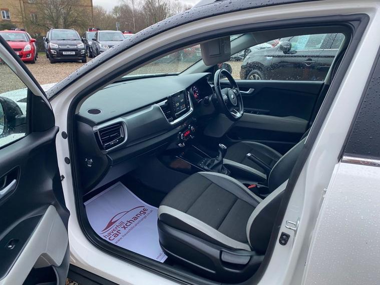 LONG MOT UNTIL 15.11.2026+SERVICE HISTORY+7 INCH TOUCHSCREEN NAVIGATION SYSTEM WITH TRAFFIC MESSAGING CHANNEL-KIA CONNECTED SERVICES+DAB RADIO+BLUETOOTH WITH VOICE RECOGNTION AND MUSIC STREAMING+GEAR SHIFT INDICATOR+AUTOMATIC AIR-CONDITIONING+AUTOMATIC HEADLIGHT CONTROL+RAIN-SENSING WINDSCREEN WIPERS+HEATED SEATS HALF LEATHER SEATS+HEATED STEERING WHEEL+PARKING ASSISTANCE WITH PARKING CAMERA SYSTEM WITH DYNAMIC GUIDELINES+CLEAR WHITE PAINT WITH BLACK ROOF+17 INCH ALLOY WHEELS. At Haverhill Car Xchange we would like to offer you our Kia Stonic First Edition SUV which has been finished in a Clear White paint, Black roof/Door mirrors with luxurious HEATED Black-Grey Leather/Cloth upholstery with Grey Accents. Excellent Specification Includes a 7 Inch Touchscreen Navigation System with Traffic Messaging Channel, Kia Connected Services Featuring TOMTOM, DAB Digital Radio, Bluetooth with Voice Recognition and Music Streaming, Front and Rear USB Charging Port, AUX Port, 12 Volt Power Socket, Automatic Air-Conditioning, Gear Shift Indicator, Engine Start/Stop Button with Smart Entry System, Cruise Control with Speed Limiter, All-Round Electric Windows with Drivers Auto Up-Down Function, Body Coloured Bumpers/Door Handles/Rear Roof Spoiler, Black Door Mirrors with Integrated Side Indicators, Black Side Sill-Door Garnish and Wheel Arch Trims, Black High Gloss and Satin Radiator Grille, Chrome Side Window Trim, Roof Rails, Automatic Headlight Activation, Welcome and Follow-Me-Home Headlights, LED Daytime Running Lights, LED Rear Combination Lights, Projection Front Fog Lights, Rain-Sensing Windscreen Wipers, Heated Seats, Heated Multifunction Steering Wheel, Parking Assistance with Parking Camera, Stainless Steel Pedals, Blind Spot Detection, Heated Rear Windscreen, Rear Privacy Glass, 17 Inch Alloy Wheels, Power Assisted Steering, Hill Start Assist, ABS Breaking System, Airbags, Alarm, Immobiliser, Remote Central Locking and ISOFIX Anchorage Points for Child Seats,