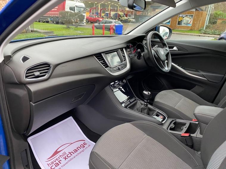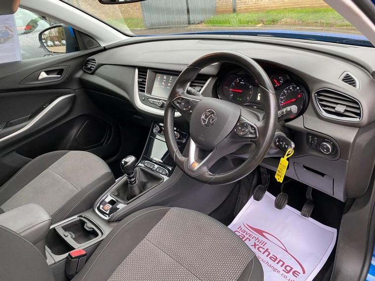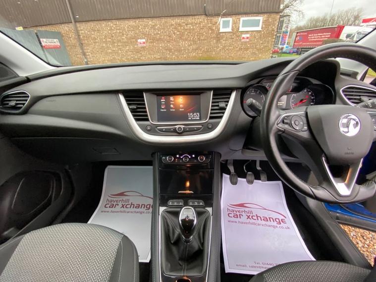 SERVICE HISTORY CONSISTS OF X7 SERVICES+LONG MOT UNTIL 04.08.2026+R4.0 INTELLILINK TOUCHSCREEN INFOTAINMENT SYSTEM+CRUISE CONTROL+ELECTONIC CLIMATE CONTROL AIR-CONDITIONING+AUTOMATIC HEADLIGHT ACTIVATION+RAIN-SENSING WINDSCREEN WIPERS+FRONT & REAR PARKING ASSISTANCE WITH PARKING CAMERA+TOPAZ BLUE PAINT+17 INCH ALLOY WHEELS. At Haverhill Car Xchange we would like to offer you our Vauxhall Grandland X SE SUV which has been finished in a beautiful Topaz Blue paint with Black Harlekin Cloth upholstery. Specification Includes an R4.0 Touchscreen Intellilink Infotainment System, 12 Volt Power Socket, Vauxhall OnStar, Lane Departure Warning, Speed Sign Recognition, Electronic Climate Control Air-Conditioning, Cruise Control with Speed Limiter, Shift Up Indication Light, Electrically Operated Front and Rear Windows with Safety Autoreverse and One-Touch Facility, Body Coloured Bumpers/Door Handles and Door Mirrors, Chrome Effect Front Grille Bar, Automatic Headlight Activation, Halogen Headlights, LED Daytime Running Lights, LED Tail Lights, Door-to-Door Illumination, Automatically Anti-Dazzle Rear-View Mirror, Rain-Sensing Windscreen Wipers, Front and Rear Parking Assistance with Parking Camera, Steering Wheel Mounted Audio Controls, Tinted Windows, Heated Rear Windscreen, 17 Inch Alloy Wheels, Power Assisted Steering, Hill Start Assist, ABS Breaking System, Airbags, Alarm, Immobiliser, Remote Central Locking and ISOFIX Anchorage Points for Child Seats.