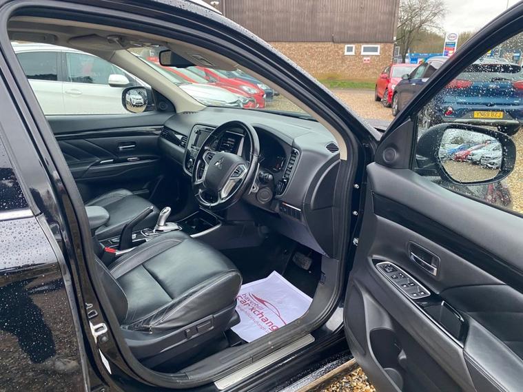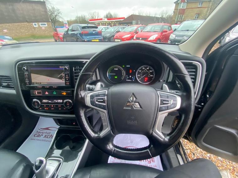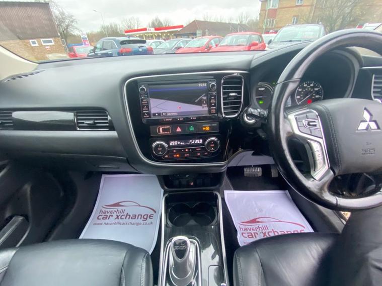 AUTOMATIC+SATELLITE NAVIGATION SYSTEM+DAB DIGITAL RADIO-CD-MP3 PLAYER+BLUETOOTH HANDSFREE+DUAL ZONE CLIMATE CONTROL AIR-CONDITIONING+HEATED LEATHER UPHOLSTERY+HEATED MULTIFUNCTION STEERING WHEEL+PANORAMIC GLASS ROOF+AUTOMATIC HEADLIGHT ACTIVATION WITH LIGHT SENSOR+FRONT & REAR PARKING ASSISTANCE WITH PARKING CAMERA+AMETHYST BLACK PAINT+18 INCH ALLOY WHEELS. At Haverhill Car Xchange we would like of offer you our AUTOMATIC Mitsubishi Outlander which has been finished in a Amethyst Black paint with luxurious HEATED Black leather upholstery. Excellent Specification Includes a 7 Inch Touchscreen Display Satellite Navigation System, PAN European Mapping, DAB Digital Radio-CD-MP3 Compatibility, Bluetooth Handsfree Telephone, iPod Compatibility, USB Connection, 12 Volt Power Socket, Dual Zone Climate Control Air-Conditioning, Cruise Control, ECO Mode Switch, Front and Rear Electric Windows, Body Coloured Bumpers/Door Handles and Door Mirrors with Integrated Side Indicators, Automatic Headlight Activation with Tunnel Detection, LED Daytime Running Lights, Follow-Me-Home Headlights, Front Fog Lights, High Mounted Break Light, Heated Seats, Heated Multifunction Steering Wheel, Front and Rear Parking Assistance with Parking Camera, Electric Glass Sunroof, Rear-View Auto Dimming Mirror, Power Assisted Steering, Hill Start Assist, ABS Breaking System, Airbags, Alarm, Immobiliser, Remote Central Locking and ISOFIX Anchorage Points for Child Seats.