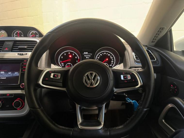 Volkswagen Scirocco 1.4 TSI BlueMotion Tech Hatchback 3dr Petrol Manual Euro 6 (s/s) 125 PS Registration: CA66ONC | Year: 2017 (66) | Mileage: 76, 700 miles Colour: White | Fuel: Petrol | Transmission: Manual This Volkswagen Scirocco combines striking coupe-style design with everyday usability and renowned German engineering. Powered by the efficient yet responsive 1.4 TSI petrol engine producing 125 PS, it delivers a smooth, engaging drive while maintaining excellent fuel economy thanks to BlueMotion Technology. With its low-slung stance, frameless doors and aerodynamic profile, the Scirocco stands out from the crowd. Inside, it offers a sporty, driver-focused cabin with high-quality materials and practical features, making it just as suitable for daily driving as it is for longer journeys. Key Features and Specification: 1.4 TSI petrol engine with 125 PS Euro 6 compliant BlueMotion Technology including Start/Stop and brake energy recuperation 6-speed manual gearbox 3-door hatchback with sporty coupe styling 17-inch alloy wheels Sports seats with height adjustment Leather-wrapped multifunction steering wheel Touchscreen infotainment system DAB digital radio Bluetooth connectivity for hands-free calls and media streaming Air conditioning Cruise control Front and rear electric windows Electrically adjustable and heated door mirrors ISOFIX child seat mounting points ABS, ESP and multiple airbags for added safety This Scirocco offers an excellent balance of performance, efficiency and style, making it an ideal choice for drivers looking for something more distinctive than the average hatchback without compromising on reliability or running costs.