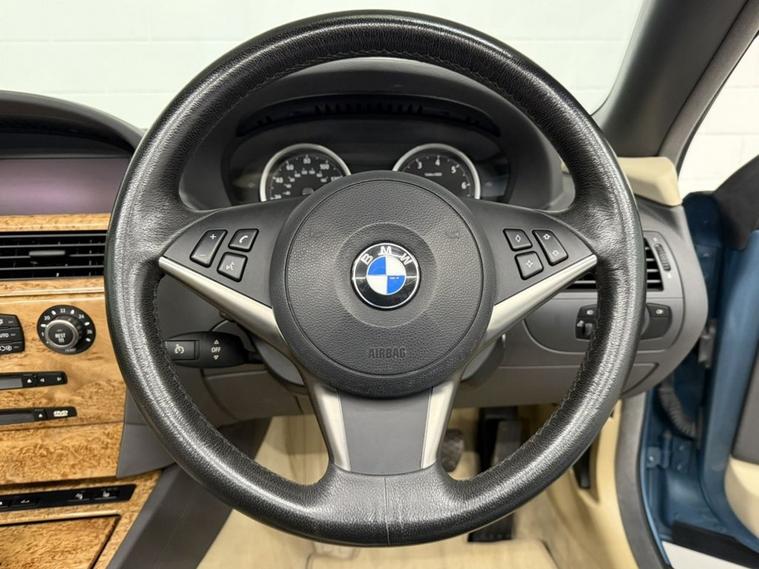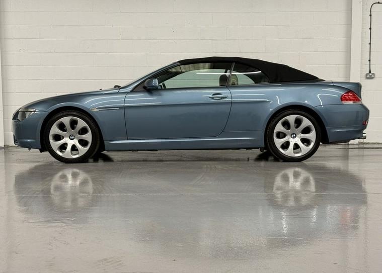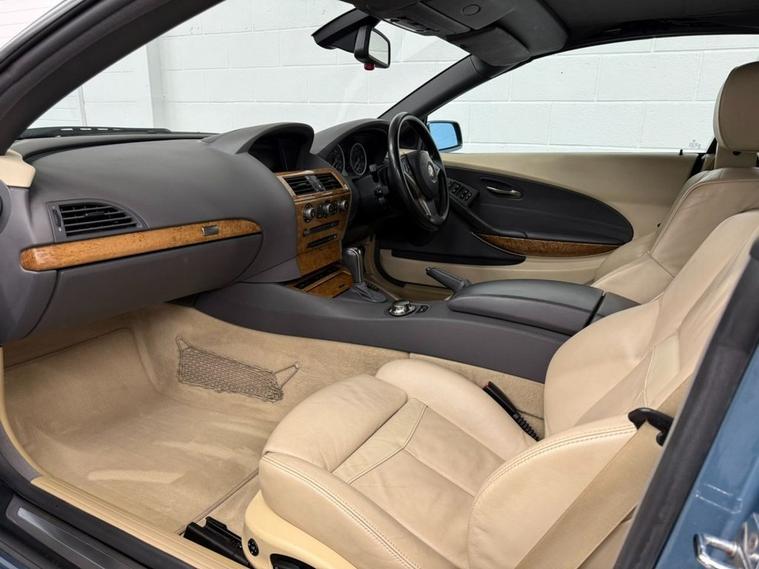 Finished in Atlantic Blue with Exclusive Pearl Cream Beige Leather Interior. Features include 19 Star Spoke 92 Alloy Wheels, Black Soft Top Roof, BMW Business Radio with Single CD Player, Hi-Fi Loudspeaker System, 6 Disc CD Changer, FM / AM, Professional SatNav, Front & Rear Park Distance Control, Air Conditioning with Two Zone Control, Heated Electric Front Sports Seats with Driver Memory Function, Extended Lights Package, Front Fog Lights, Cruise Control, Electrically Adjustable Door Mirrors, Light Birch Wood Interior Trim, Three Spoke Multifunctional Leather Steering Wheel, Automatic Transmission plus much more standard specification. This BMW 630i is offered in excellent condition having covered only 72944 miles from new by its 4 former keepers. The car comes complete with a service history consisting of the following 07/01/2008 at 17936 miles, 31/12/2008 at 22351 miles, 10/03/2010 at 28662 miles, 18/05/2011 at 33391 miles, 06/06/2013 at 40744 miles, 09/06/2015 at 47539 miles, 18/08/2015 at 48703 miles, 16/10/2017 at 55062 miles and 05/11/2025 at 72638 miles. PLEASE CALL OR E-MAIL FOR FURTHER DETAILS OR TO ARRANGE A PERSONALISED VIDEO OR VIEWING.