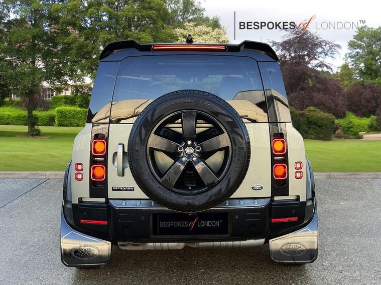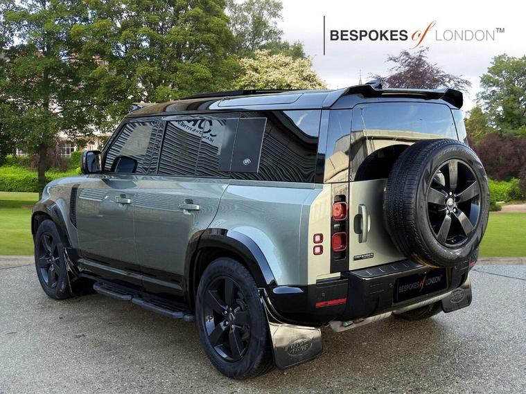 VIDEO AVAILABLE ON REQUEST…MASSIVE SPEC.....BESPOKES OF LONDON WOULD LIKE TO GIVE YOU THE OPPORTUNITY TO PURCHASE STUNNING LOOKING LAND ROVER DEFENDER 110 FIRST EDITION IN PANGEA GREEN WITH BLACK LEATHER INTERIOR THIS CAR COMES WITH WARRANTY ALSO HAS JUST BEEN SERVICED … This car has been independently inspected &. Any car purchased from Bespokes of London which is not covered by a manufacturer's warranty will benefit from a 3 Month's Warranty giving total peace of mind SOME SPEC AS FOLLOWS… Panoramic Opening Roof + BLACK EXTERIOR PACK + SIDE STEPS + BLACK BONNET + MEMORY FRONT SEATS + HEATED FRONT SEATS + Meridian Sound System + Front Climate Control + Rear Privacy Glass + 360 Camera | Apple CarPlay + So more P/X WELCOME BEST FINANCE RATES AVAILABLE HIGHLY RECOMMENDED VIEWING ENQUIRE TODAY READY TO DRIVEAWAY SAMEDAY We Have over 20 years Combined Experience in the Motor Trade. Why Choose us we are we can facilitate FINANCE enquiries and provide competitive rates, in addition we welcome PART EXCHANGE. We also offer NATIONWIDE DELIVERY. The Defender 110 SD4 First Edition offers impressive performance, accelerating from 0 to 60mph in just 8.7 seconds, demonstrating its dynamic capabilities. Its substantial 3500 kg towing weight highlights its exceptional utility, making it a versatile choice for a wide range of needs, from everyday driving to more demanding tasks. These attributes, combined with its advanced technology and refined interior, position this Defender 110 as a superior option within its class.