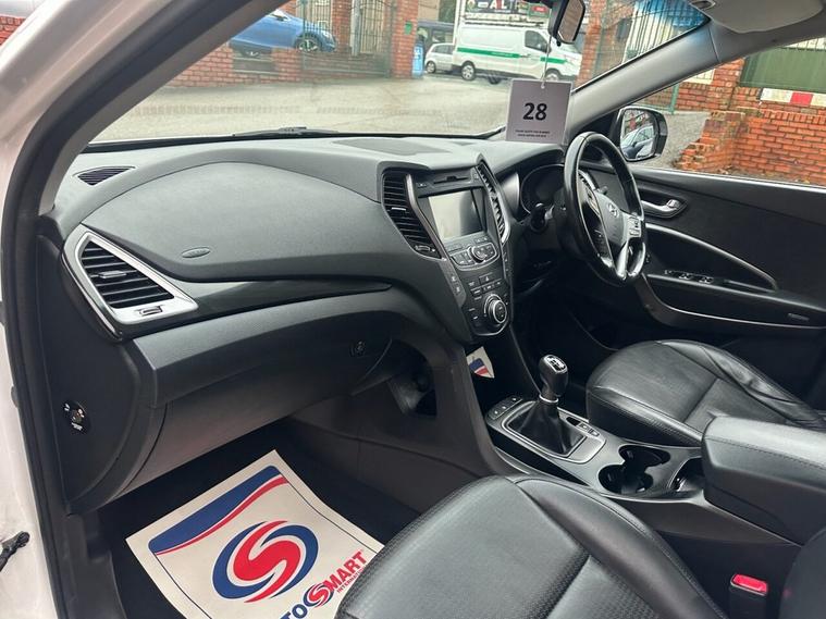 Stamped service book (please see photos) : 2 Keys : Bluetooth : Satellite Navigation system : Quality full leather upholstery : Heated front seats : Isofix fittings : Air-conditioning : Cruise control/Speed limiter : Auto headlights/wipers : Hyundai Hill-Descent control system : Rear view camera : Rear parking sensors : Cargo/Load cover : Rear privacy glass : Roof-Rails : 18-inch alloy wheels : Stylish Creamy white paintwork : Please go to dealer's website to see more vehicles like this.................................... This 2015 Hyundai Santa Fe CRDi Premium is a standout choice with exceptionally low mileage for its age, having covered just 51050 miles. This four wheel drive model is powered by an efficient 2.2 litre diesel engine and boasts a generous towing weight of 2500 kg, making it a capable companion for various needs. The Premium trim level ensures a comfortable and convenient driving experience, featuring dual zone climate control to keep all occupants happy, and heated front seats for those colder journeys. Parking is made simpler with rear parking sensors and a rear view parking camera complete with a parking guidance system. Automatic headlights also add to the ease of driving, illuminating the road ahead without you needing to think about it. Further enhancing its appeal, this Santa Fe sits in a low insurance group, which could mean more affordable ownership. The combination of its very low mileage, robust four wheel drive system, and the practical features like parking assistance and climate control demonstrate its superior condition and thoughtful specification compared to other vehicles of its kind. This Hyundai Santa Fe CRDi Premium offers a compelling blend of practicality, comfort, and economy.