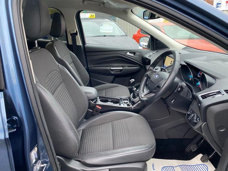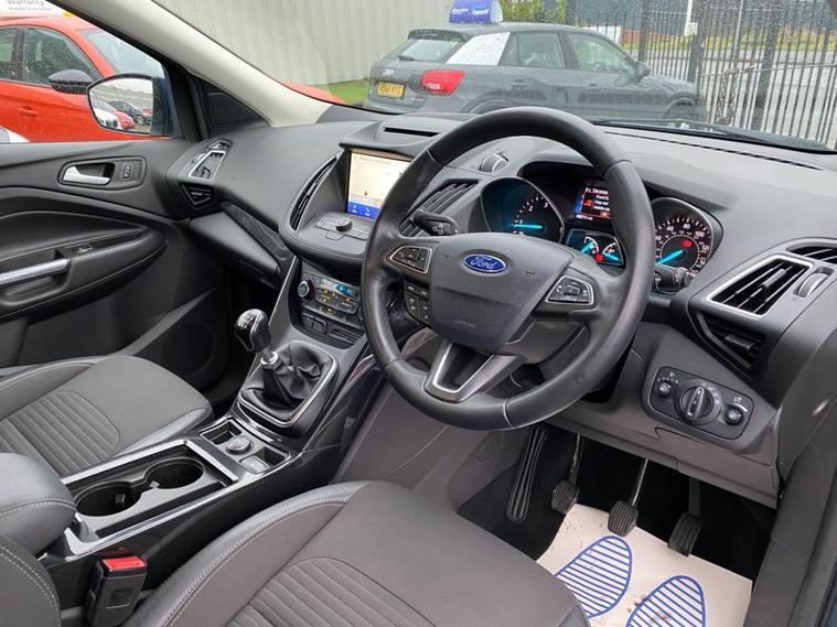 Discover this 2019 Ford Kuga TDCi Titanium Edition, a well maintained example ready for its next adventure. This stylish SUV is powered by an efficient 2.0 litre diesel engine, meeting Euro 6 emissions standards. The Titanium Edition trim level ensures a premium experience, featuring the convenient Ford Key Free System for keyless entry and start, alongside DEATC Dual-Zone Electronic Automatic Temperature Control for personalised comfort. Navigating and staying connected is effortless with the Ford SYNC3 DAB Navigation System, offering seamless integration with Android Auto and Apple CarPlay, plus Bluetooth connectivity. Parking is made simpler with rear parking sensors providing valuable assistance. These features collectively enhance the Kugas appeal, offering a more refined and user friendly driving experience compared to other vehicles in its class.