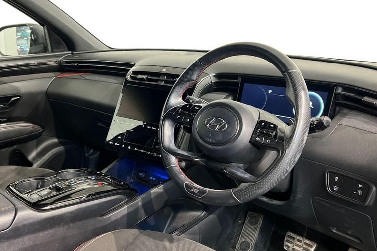 This 2023 Hyundai TUCSON h T-GDi N Line boasts a clear vehicle history and has had only one owner, offering you peace of mind. This stylish SUV features a 1.6 litre petrol hybrid engine, meeting Euro 6 emission standards. Youll appreciate the convenience of front and rear parking sensors, a smart key with keyless entry and engine start stop button, and Bluetooth connectivity. For added ease, it includes a wireless phone charging pad and automatic headlights that activate with a dusk sensor. Experience impressive performance with an acceleration of 0 to 60 miles per hour in just 8.0 seconds, demonstrating its capability. The TUCSON also offers generous boot space, making it practical for all your needs. Furthermore, its low insurance group rating indicates that running costs are kept to a minimum compared to similar vehicles. With an MOT valid until January 2027, this well maintained Hyundai TUCSON is ready for its next adventure.