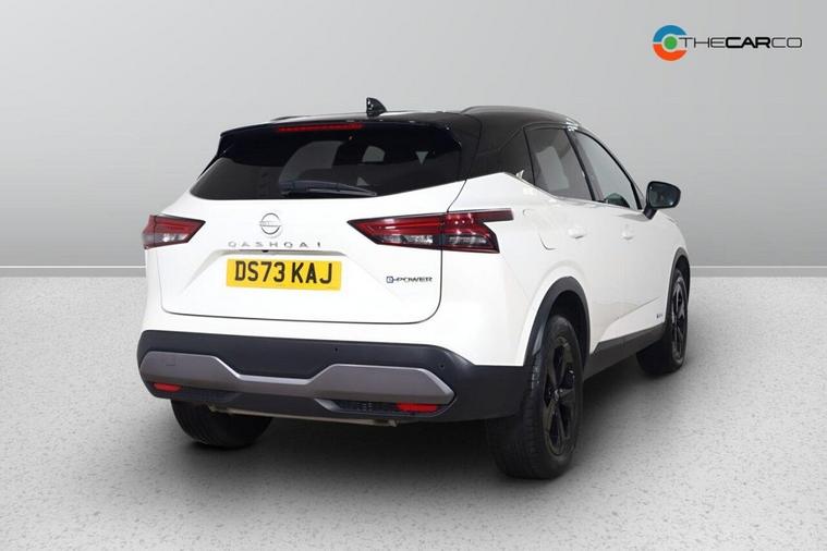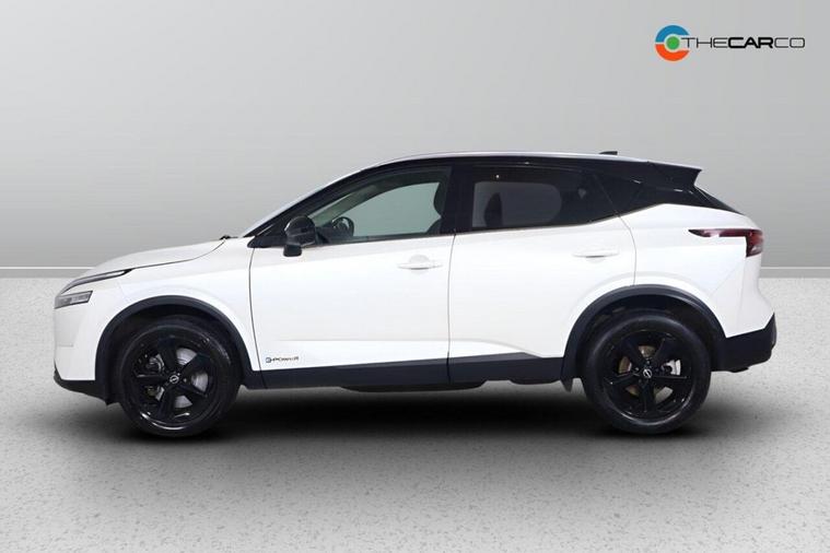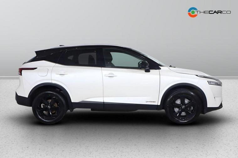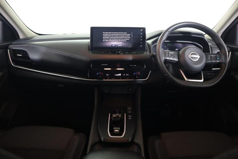 This 2023 Nissan Qashqai h e-POWER Kuro Edition is a superb example, having had only one owner since new. This stylish Kuro Edition variant boasts a 1.5 litre petrol hybrid engine, meeting Euro 6 emission standards. You'll appreciate the convenience of front and rear parking sensors, complemented by parking assistance systems. The interior is enhanced by automatic dual zone climate control with a pollen filter, ensuring a comfortable cabin environment. Furthermore, the Glass Roof Pack, featuring a fixed panoramic sunroof, floods the interior with natural light, while the LED headlights provide excellent visibility. Experience impressive performance with this Qashqai, achieving 0 to 62 miles per hour in just 7.9 seconds. Its fuel economy is a notable highlight, offering up to 54 miles per gallon, which indicates it is more economical than many similar vehicles. This model also stands out with its low CO2 emissions, demonstrating its environmental consideration compared to other cars. Practicality is key, with a large boot space offering ample room for all your needs, making this Qashqai a well rounded and efficient choice.