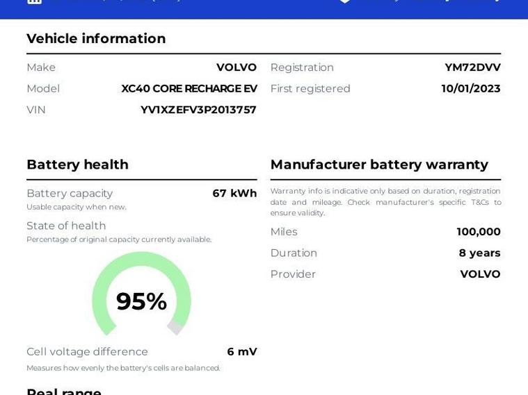 GRADE A BATTERY HEALTH Volvo XC40 Recharge 69kWh Core - Terrain Modes , LED Lighting, Sat Nav, Apple Car Play, Android Auto - Full Volvo Service History This 2023 Volvo XC40 Core is a pristine example, having had only one owner from new and boasting a clear vehicle history check. As an all electric model, it offers a substantial 69 kWh battery with a maximum range of 263 miles when new, making it ideal for both daily commutes and longer journeys. Charging at home with a 7kW charger takes approximately 11 hours for a full charge, while rapid public charging can take you from empty to 80% in just 36 minutes. The XC40 Core comes equipped with a host of features designed for comfort and convenience. Enjoy a consistently pleasant cabin environment thanks to the 2 Zone Electronic Climate Control with Rear Air Vents and the CleanZone Air Quality System with Pollen Filter. Connectivity is seamless with the Bluetooth Handsfree System, and managing your vehicle is made easy with Volvo Cars Services and App, which includes Keyless Entry. Driving at night is enhanced by Automatic LED Headlights with Active High Beam, and parking is made simpler with Rear Park Assist. These elements combine to offer a refined and practical driving experience that sets this XC40 apart. Service History Full service history recorded as follows: 05/04/2024 @ 18832 miles 22/05/2025 @ 38761 miles Jan 2026 Nuneaton Car Sales Key Features & Specification 19 Inch Alloy Wheels Full LED Lighting Rear Parking sensors Cruise Control Air Conditioning / Dual-Zone Climate Control Satellite Navigation DAB Digital Radio Bluetooth Connectivity USB / Voice Control ISOFIX Child Seat Mounts with Privacy Tinted Rear Windows Driver Assistance Features Start/Stop Technology Vehicle Information Registration: 10/01/2023 Mileage: 45936 Fuel Type: Hybrid / Electric Transmission: Automatic Owners: [1] HPI Status: Clear Why Buy From Nuneaton Car Sales? * Multi Award-Winning Dealership * AA Approved Dealer * NO ADMIN FEES * 12 Months AA Breakdown Cover * Multi-Point Vehicle Inspection * Free MOT if due within 6 months * Competitive Finance Available * Part Exchange Welcome * Click & Collect & Home Delivery Available * Same Day Drive Away on most vehicles Extra Peace of Mind Personalised walk-around videos available on request. All vehicles professionally prepared and valeted prior to sale. This vehicle is price-checked daily against the UK market to ensure excellent value. Every effort is made to ensure vehicle information is accurate. Specification data may be supplied by a third-party source. If a particular feature is important to your purchase decision, please contact our sales team who will be happy to confirm.
