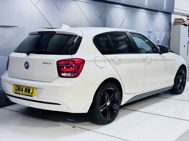 This 2014 BMW 1 Series 116d Sport offers excellent value with a respectable 83, 000 miles on the clock. This particular model benefits from a 2.0L diesel engine and comes in the desirable Sport trim, with gloss black alloy wheels, black grills and black mirror covers. Inside, youll find a host of features designed for comfort and convenience, including Park Distance Control for both the front and rear, a DAB digital radio for enhanced listening, and the BMW Navigation Package to guide your journeys. The Sun Protection Package adds privacy and reduces interior heat, while the windscreen features a handy grey shade band. The low insurance group for this BMW 1 Series 116d Sport means it is more economical to run compared to many similar vehicles. Furthermore, its generous boot space provides a practical advantage for carrying shopping, luggage, or sports equipment, making it a versatile choice for everyday use and weekend adventures. REG GM14MWJ