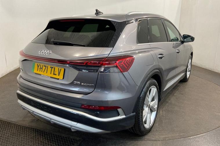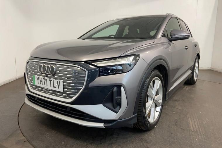 This 2021 Audi Q4 e-tron S line boasts a clear vehicle history, offering peace of mind for its next owner, and its MOT is valid until October 2026. This electric SUV features a 55 kWh battery with a maximum range of 201 miles when new. Charging is convenient, with a full charge at home taking approximately 7 hours and 30 minutes using a 7kW charger, and a rapid charge to 80% possible in just 32 minutes at a public charging station thanks to its 110kW DC charging capability. The S line trim enhances the driving experience with features like heated front seats, a comfort auxiliary air conditioning system, and a Bluetooth interface for seamless connectivity. The Audi Q4 e-tron S line stands out with its impressive electric performance and thoughtful features. Its 7.2 kW onboard charger ensures efficient power management, making it a practical choice for daily driving and longer journeys. The combination of its substantial electric range, rapid charging capabilities, and the premium S line specification positions this vehicle as a superior option for those seeking an advanced and comfortable electric driving experience.
