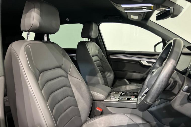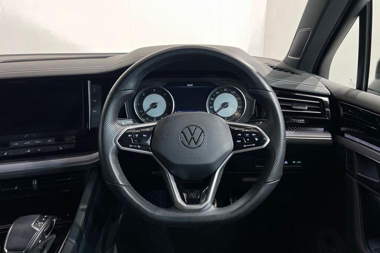 With only one owner and a clear vehicle history, this 2022 Volkswagen Touareg TDI V6 R-Line presents a superb ownership proposition. This Euro 6 compliant, four wheel drive SUV is powered by a robust 3.0 litre diesel engine, offering impressive performance with a 0-60mph time of just 7.6 seconds. Its MOT is valid until December 2026, and it boasts a low mileage of 25, 600 miles for its age. The R-Line trim ensures a premium feel, complemented by a multifunction heated R-Line steering wheel with paddle shift and leather trim. This Touareg excels with its generous boot space, making it ideal for families or those needing ample storage. The advanced Park Assist system, featuring ultrasonic front and rear sensors with optical and audible warnings, simplifies manoeuvring. Inside, youll find a storage compartment in the front centre console for wireless smartphone charging, alongside a combined functionality of Apple CarPlay, Google Android Auto, and MirrorLink for seamless connectivity. The 4 zone electronic air conditioning with automatic air recirculation ensures comfort for all occupants. Furthermore, its low insurance group rating indicates it is more economical to run than many comparable vehicles, and with a towing weight of 3500 kg, it is exceptionally capable.