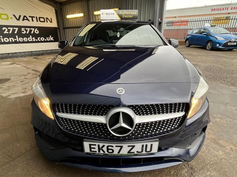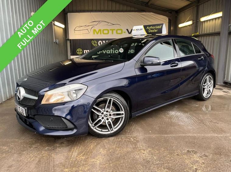 Moto Vation are offering this Automatic Mercedes A-CLASS in a desirable colour with half Black leather interior. With only 3 previous owners from new, it is clear it has been loved. Supplied with a Full Years MOT and Service History attached with 5 stamps- last in our Service Centre in 01/26! Bosting a great specification including a Multi Functional Steering Wheel, 18 Alloys, Paddle Shaft, Reverse Camera, Sports Seats, Cruise Control, Push Button Start, Mercedes Connect Me, Isofix, Auto Headlights, Sat Nav, Start/ Stop, Parking Sensors and Bluetooth. £195 Annual Tax. Please confirm with a Sales Executive how many keys this vehicle comes with. All of our vehicles come with a 3 months Nationwide warranty and a 12 months basic AA breakdown cover. Please read our reviews! Please note- the above vehicle specification is confirmed and correct. The vehicle specification listed elsewhere may sometimes be inaccurate so please check with the Sales team when enquiring to clarify this prior to purchase.