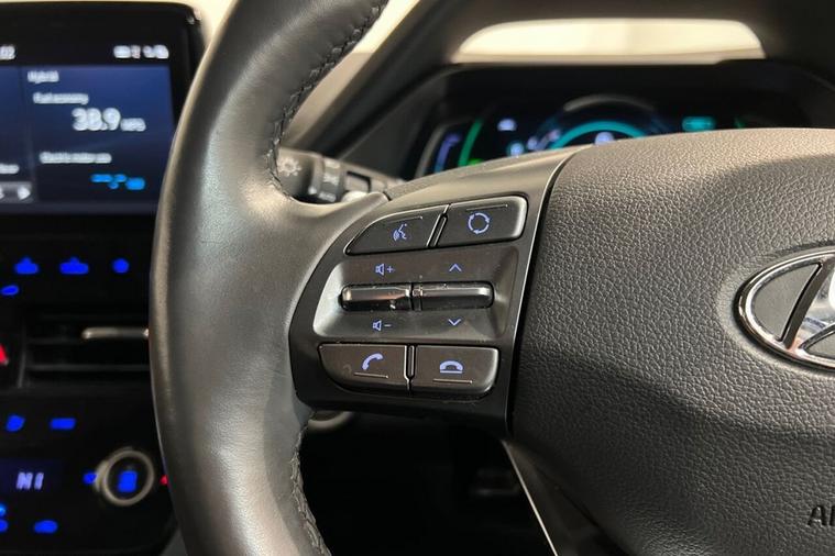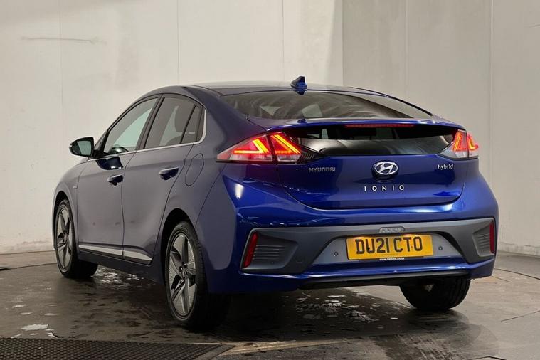 This 2021 Hyundai IONIQ h-GDi Premium SE boasts a clear vehicle history check, offering you peace of mind. This Euro 6 compliant model features a 1.6 litre petrol hybrid engine and comes with an MOT valid until October 2026. Youll find convenient Bluetooth connectivity, front and rear parking sensors, and a rear camera with guidance system to assist with parking. Enjoy seamless phone integration with Apple CarPlay and appreciate the ease of automatic headlights that activate with a dusk sensor. The Premium SE trim level is designed to impress, offering excellent fuel economy of 61 miles per gallon, which is better than many similar vehicles. Its low CO2 emissions and low insurance group also indicate that this Hyundai IONIQ is a more economical choice for your motoring needs compared to other cars in its class.