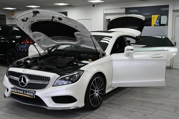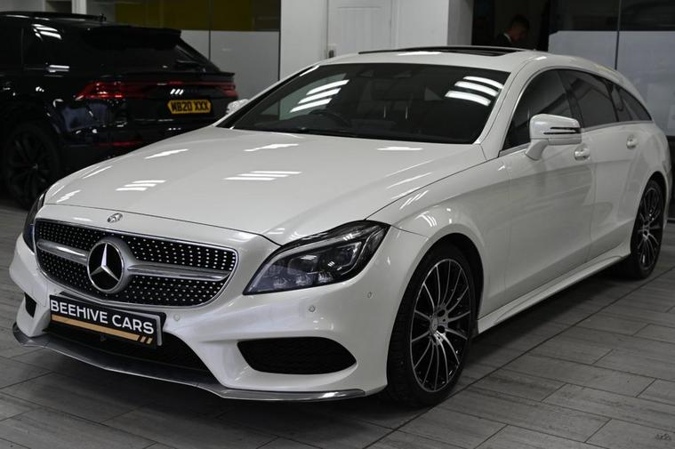 DRIVE AWAY TODAY OR HOME DELIVERY TO YOUR DOORSTEP FINANCE & PART EXCHANGE ARRANGED ONLINE** 7 DAY MONEY BACK GUARANTEE** Lovely car Mercedes Cls220 blue tec amg line shooting brake in metallic designo diamond White full service history sat nav cd radio bluetooth media usb tilt and slide sunroof reverse camera full leather seats with armrest heated seats electric memory seats electric folding door mirrors front and rear parking aid sensors xenon lights flat bottom steering wheel with f1 style paddleshifts electric push button tailgate alloys privacy