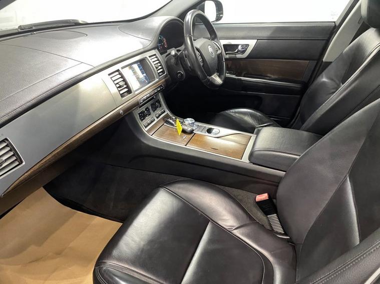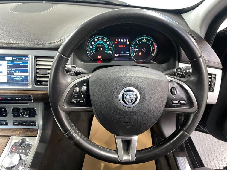 If youre a car enthusiast, its very hard not to get caught up in the magic of the Jaguar name and the XFs low-slung, sporty design and styling. Its sharp and rewarding to drive and as youd expect, comes with a great level of refinement, comfort and equipment. This striking example is finished in Stratus Grey metallic and stands on clean 19 alloy wheels and has a good splash of exterior chrome detail. The interior is a lovely place to be, whether youre driving or relaxing as a passenger. The seats are fully upholstered in Carbon leather and are clean, comfortable and supportive with 3-stage electric heating. Jaguars intuitive touchscreen media system includes navigation, Bluetooth connectivity, DAB radio and a rear park camera together with front / rear sensors. Cruise, audio and telephone controls can be accessed via the leather multi-function steering wheel and the driver can opt for Sport or Economy drive modes. The smooth 8 speed automatic transmission coupled with the reliable 2.2 litre diesel engine offers a powerful 187 Bhp yet should still achieve up to 58 mpg on a motorway run, according to Jaguars data.