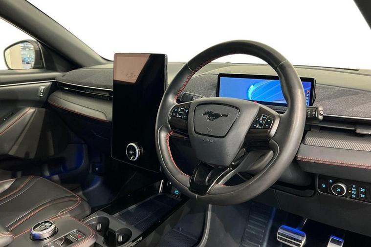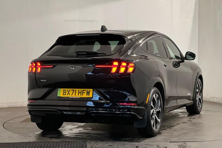 This 2021 Ford Mustang Mach-E is a remarkable example, having had only one owner since new. This electric vehicle, presented in the Standard Range variant, boasts a four wheel drive drivetrain powered by a 76 kWh battery, offering a maximum range of 248 miles when new. Charging at home with a 7kW charger takes approximately 11 hours and 24 minutes, while rapid public charging can take the battery from empty to 80% in just 43 minutes. Inside, youll find a host of convenient features including a wireless device charging pad, heated driver and passenger seats, and dual zone electronic automatic climate control. For enhanced safety and ease of parking, it is equipped with a 360 degree camera and BLIS blind spot information system with cross traffic alert. Experience exhilarating performance with this Mustang Mach-E, capable of accelerating from 0 to 60mph in a swift 5.6 seconds. This impressive acceleration highlights its dynamic capabilities, setting it apart from many other vehicles in its class. The combination of its electric powertrain, all wheel drive system, and advanced technology ensures a refined and responsive driving experience, making it a compelling choice for those seeking both efficiency and performance.