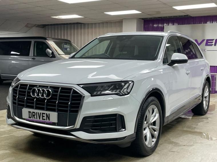 Driven Of York Are Proud To Present This 1 Owner From New 2021 21 Audi Q7 3.0TDI V^ 45 Sport Quattro Presented In Stunning Glacier White With Contrasting Black Leather Interior. This Lovely Low Mileage 7 Seater Example Features 19 Alloy Wheels, Front And Rear Park Sensors With Reverse Camera, Automatic Headlights With Audi Intelligent Light System And Animated Indicators, Privacy Glass And Powered Tailgate, Adaptable Air Suspension, A FULL DIGITAL DASH! Bluetooth And USBC Connectivity, SAT NAV, Android Auto And Apple Carplay, FM/DAB Radio, Powered Folding 3rd Row Seats, Air Conditioning With Dual Zone Climate Control, Electric Front Heated Seats With Lumbar And Driver Memory, Leather Multifunction Steering Wheel With F1 Style Paddleshift Gearbox And Sports Drive Modes, Audi Assist Systems And Hill Decent Control. This Stunning Example Also Features FULL Service History! Reserve Now For Just £149!