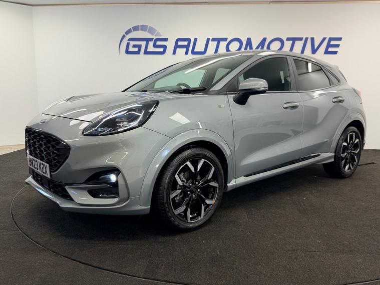 A Lovely FORD PUMA 1.0 TURBO ECOBOOST MHEV HYBRID ST-LINE X Five Door 155bhp Six Speed in Solar Grey Metallic with Black Half Leather Interior. A Great Specification with Touch Screen Satellite Navigation with an 8 inch Screen, Bluetooth Mobile Phone Preparation with Music Streaming, APPLE Car Play, Bang and Olufsen Sound System, Privacy Heat Insulating Tinted Glass, Automatic Air Conditioning, ABS Brakes, Lane and Brake Assist System, Rear Parking Sensors, Drivers Info Computer, USB Connection, Front Sport Seats, Heated Front Windscreen, Electric Windows, 18 inch Five Double Spoke Alloy Wheels, Cruise Control, DAB Digital Radio, 3 Spoke Multi-Function Steering Wheel, Front Fog Lights, Rain Sensing Wipers, Isofix Child Seat Preparation and Only Group 12E Insurance. Just Serviced and a Long MOT Until 18th February 2027. VIDEO AVAILABLE ON OUR WEBSITE!!! Welcome to GTS Automotive in the Ribble Valley. FREE DELIVERY WITHIN 50 MILES AVAILABLE - Ask For Details. Vehicle Supplied With a SIX Month Nation Wide Warranty. We Are FINANCE Specialists With Access To Over 20 Finance Specialists. LOW RATE FINANCE AVAILABLE - Subject to Status with Free Quotations and Easy Applications via our Website dealer's website - More PHOTOS On Our Website. PART EXCHANGE WELCOME. We Are an AA Approved Dealer. We Are A Friendly Family Company Who Are Happy To Help. Most Major Credit and Debit Cards Accepted. ALL Of Our Cars Are HPI Clear. Open 7 Days a week !!! Come and Visit Us! Five Minutes From Junction 31 of the M6 Motorway or Ten Minutes From The End of the M61 Motorway. Over 100 Cars in Stock! EXTEND YOUR WARRANTY to 12 MONTHS FROM ONLY £399 or 24 Months From Just £499 inc Road Side Assistance - LIMITED TIME OFFER!
