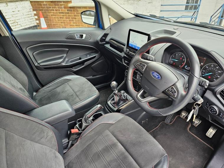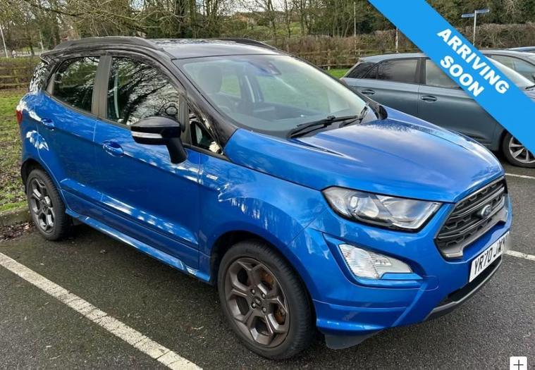 This 2020 Ford EcoSport ST-Line is a smart, sporty compact SUV thats ideal for drivers who want practicality without sacrificing style or driving enjoyment. Finished in the striking Deep Impact Blue with piano black roof, it looks fantastic on the road and benefits from the ST-Line styling pack, giving it a more athletic stance and a premium feel inside and out. With a full service history, this EcoSport has clearly been well cared for and is ready for its next owner. Under the bonnet is Fords impressive 1.0-litre EcoBoost petrol engine, producing 125 PS. It delivers a great balance of performance and efficiency, making it just as comfortable on the motorway as it is around town. The manual gearbox is smooth and engaging, while the Euro 6 engine with stop/start helps keep running costs and emissions low. The raised driving position offers excellent visibility, and the compact size makes parking and urban driving easy. Ownership of the EcoSport ST-Line brings plenty of everyday benefits. The interior is comfortable and well equipped, with sporty ST-Line touches, supportive seats, and modern technology designed to make every journey more enjoyable. Practicality hasnt been forgotten either, with a versatile boot and flexible rear seating thats perfect for shopping, weekends away, or family life. Key features and highlights include: ST-Line trim with sporty exterior and interior styling Manual transmission Euro 6 compliant with stop/start technology Full service history SUV driving position with compact, easy-to-drive dimensions Stylish Deep Impact Blue paintwork Overall, this Ford EcoSport ST-Line is a great choice for anyone looking for a reliable, economical, and stylish SUV with a sporty edge and a proven service record.