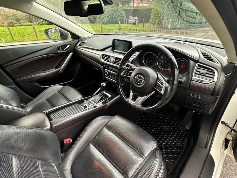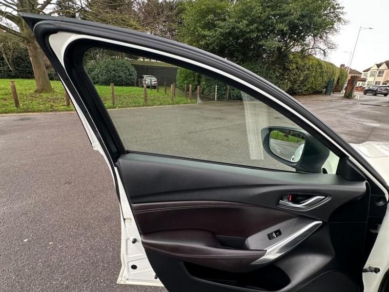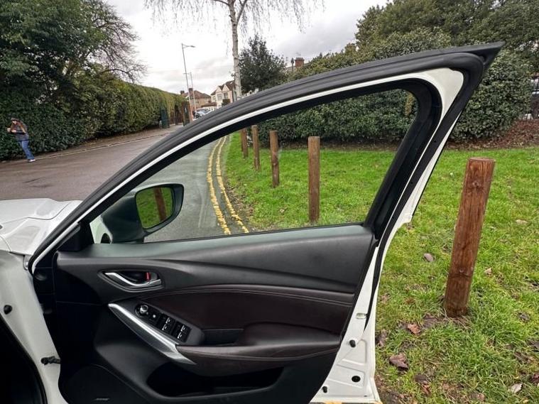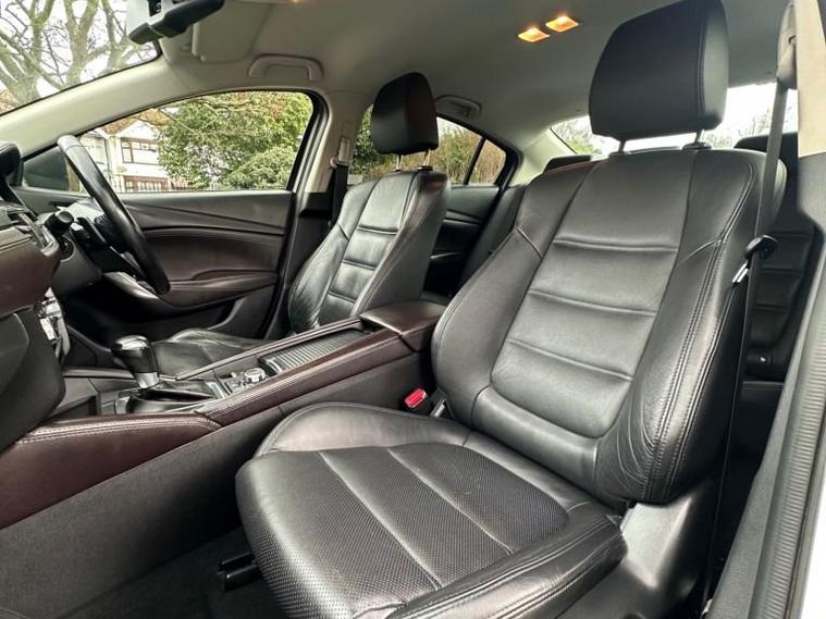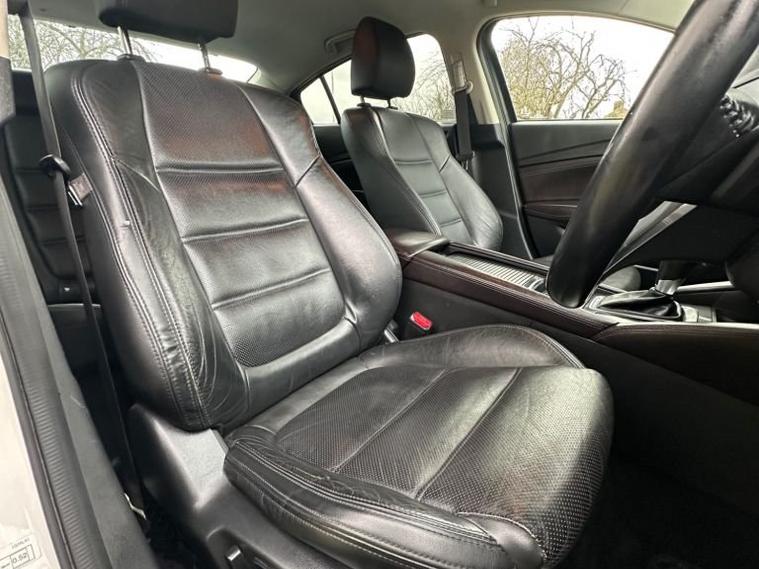 Introducing the stylish and powerful 2015 Mazda6 2.2 SKYACTIV-D Sport Nav Auto, finished in Pearl White with only 68, 000 miles. This is the range-topping Sport Nav model, offering exceptional performance, premium features, and excellent fuel economy from the impressive 175 PS SKYACTIV diesel engine paired with a smooth automatic gearbox. This Mazda6 stands out with its sleek design, sharp LED headlights, 19 alloy wheels, privacy glass, and Mazdas signature sporty styling. Inside, youll find a high-quality cabin featuring full leather seats, heated front seats, Bose premium sound system, heads-up display, reversing camera, front & rear parking sensors, electric seats, and Mazdas integrated navigation & infotainment system. The car drives beautifully responsive, comfortable, and extremely economical, making it ideal for both motorway journeys and daily commuting. The 2.2 diesel engine delivers strong torque while remaining smooth and refined. A well-maintained, clean example offering fantastic value for money. Ready to drive away.