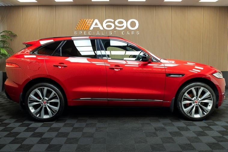 A690 Speciaist Cars is proud to presnt this stunning 2016 Jaguar F-Pace D300 V6 S SUV finished in Italian Racing Red. Experience the perfect blend of British luxury, commanding performance, and everyday practicality with this stunning Jaguar F-PACE. Designed to excite as much as it indulges, this premium SUV delivers an exceptional driving experience whether youre cruising the motorway or tackling winding country roads. Powered by Jaguars impressive 3.0-litre V6 diesel engine, producing 300PS, the F-PACE offers effortless acceleration, refined power delivery, and excellent long-distance efficiency. Paired with a smooth automatic transmission, it provides a composed yet sporty drive that truly sets it apart in its class. The S specification brings a host of desirable features, combining performance styling with luxury touches throughout. Inside, youre greeted by a beautifully crafted cabin featuring premium leather sports seats, a driver-focused cockpit, and high-quality materials that reflect Jaguars attention to detail. The spacious interior comfortably accommodates five passengers, while the generous boot makes it ideal for family life, business use, or weekend adventures. Technology and convenience are at the heart of this F-PACE, with features such as a touchscreen infotainment system, satellite navigation, Bluetooth connectivity, climate control, and cruise control, ensuring every journey is both connected and comfortable. Safety is equally well covered, offering reassurance for you and your passengers at all times. Externally, the F-PACEs sleek, muscular design is unmistakably Jaguar. Its bold stance, sculpted lines, and distinctive grille create a road presence that turns heads wherever it goes. This is an SUV that looks just as good parked outside a luxury hotel as it does on the open road. If youre looking for a powerful, refined, and stylish SUV with true Jaguar pedigree, this 2016 Jaguar F-PACE 3.0 D300 V6 S is an outstanding choice. A premium vehicle that delivers performance, comfort, and versatility in equal measure. Contact us to arrange a vewing & test drive at your convinience.